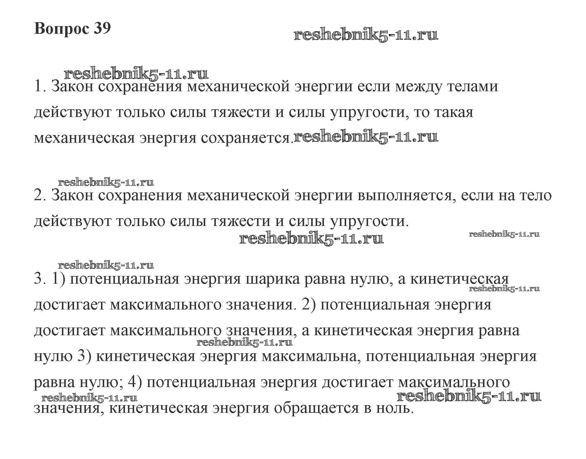 Готовая домашняя работа с ответами по Физике за 7 класс Пурышева, Важеевская Учебник Дрофа 2011 ФГОС - Вопросы 39