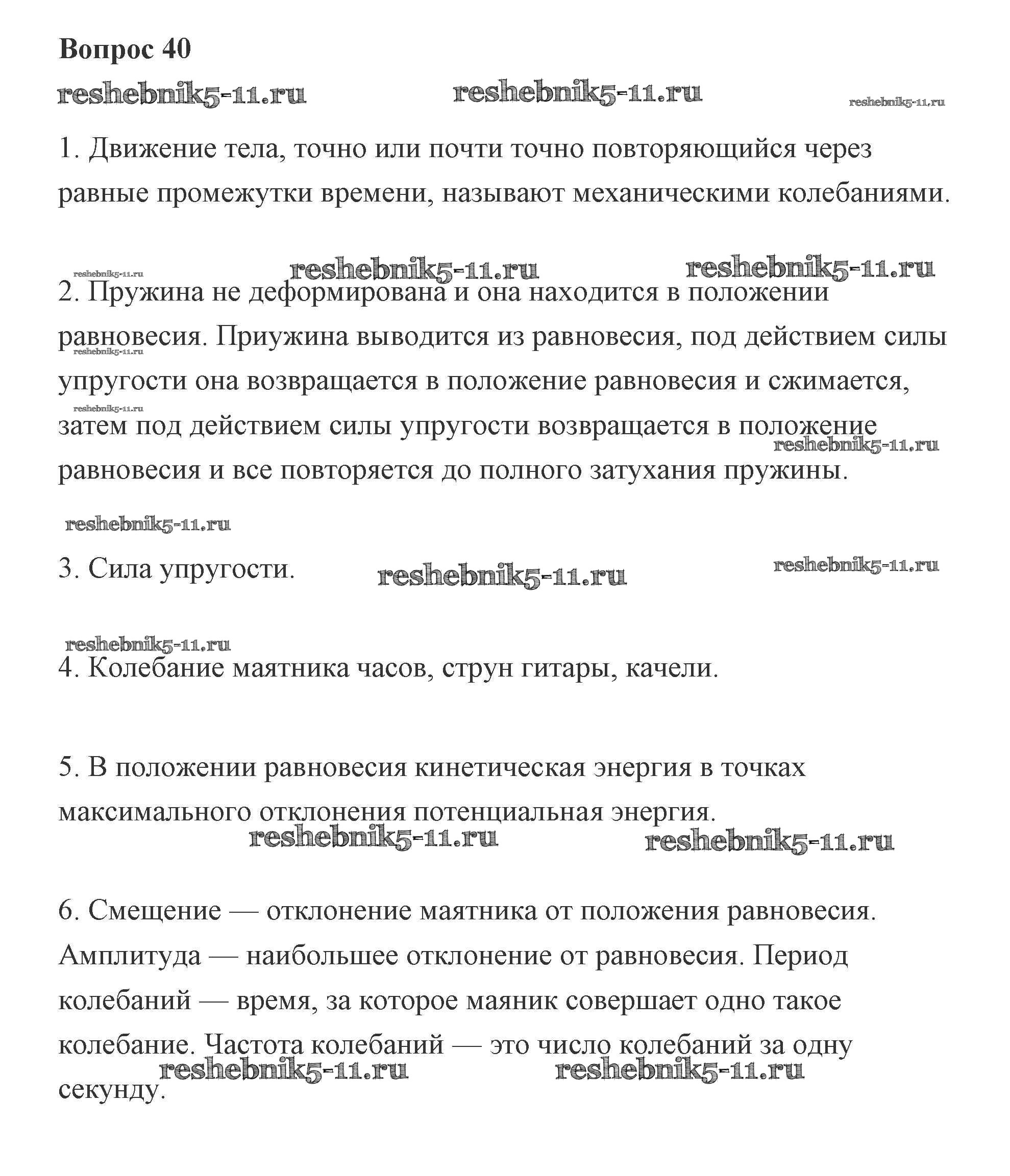 Готовая домашняя работа с ответами по Физике за 7 класс Пурышева, Важеевская Учебник Дрофа 2011 ФГОС - Вопросы 40