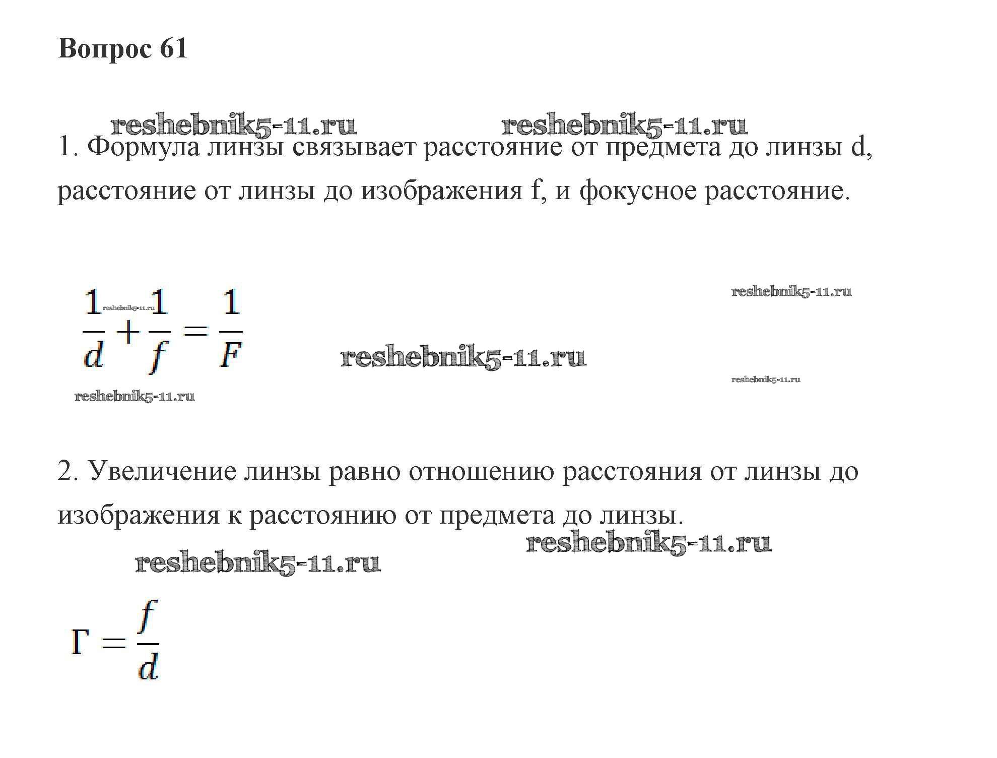 Готовая домашняя работа с ответами по Физике за 7 класс Пурышева, Важеевская Учебник Дрофа 2011 ФГОС - Вопросы 61