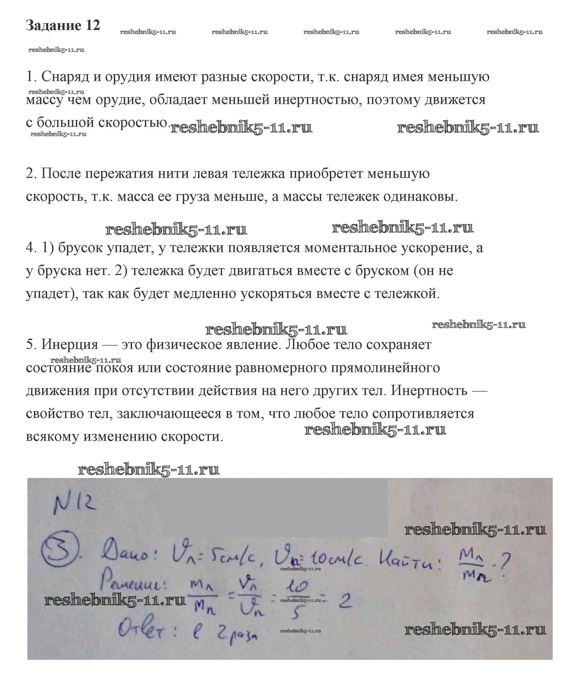 Готовая домашняя работа с ответами по Физике за 7 класс Пурышева, Важеевская Учебник Дрофа 2011 ФГОС - Задания 12