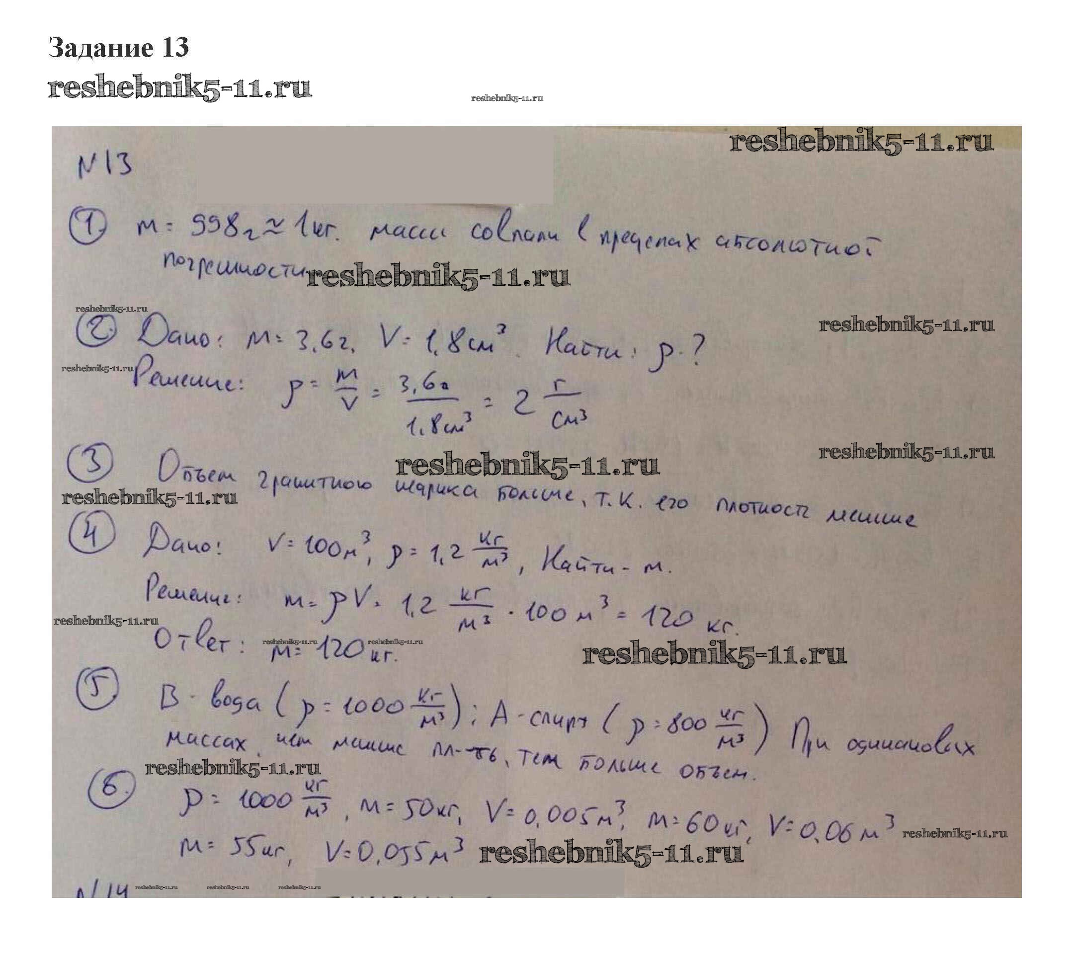 Готовая домашняя работа с ответами по Физике за 7 класс Пурышева, Важеевская Учебник Дрофа 2011 ФГОС - Задания 13