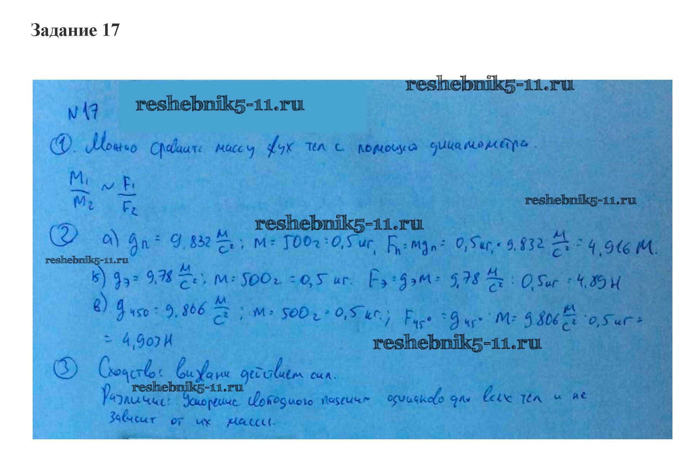Готовая домашняя работа с ответами по Физике за 7 класс Пурышева, Важеевская Учебник Дрофа 2011 ФГОС - Задания 17