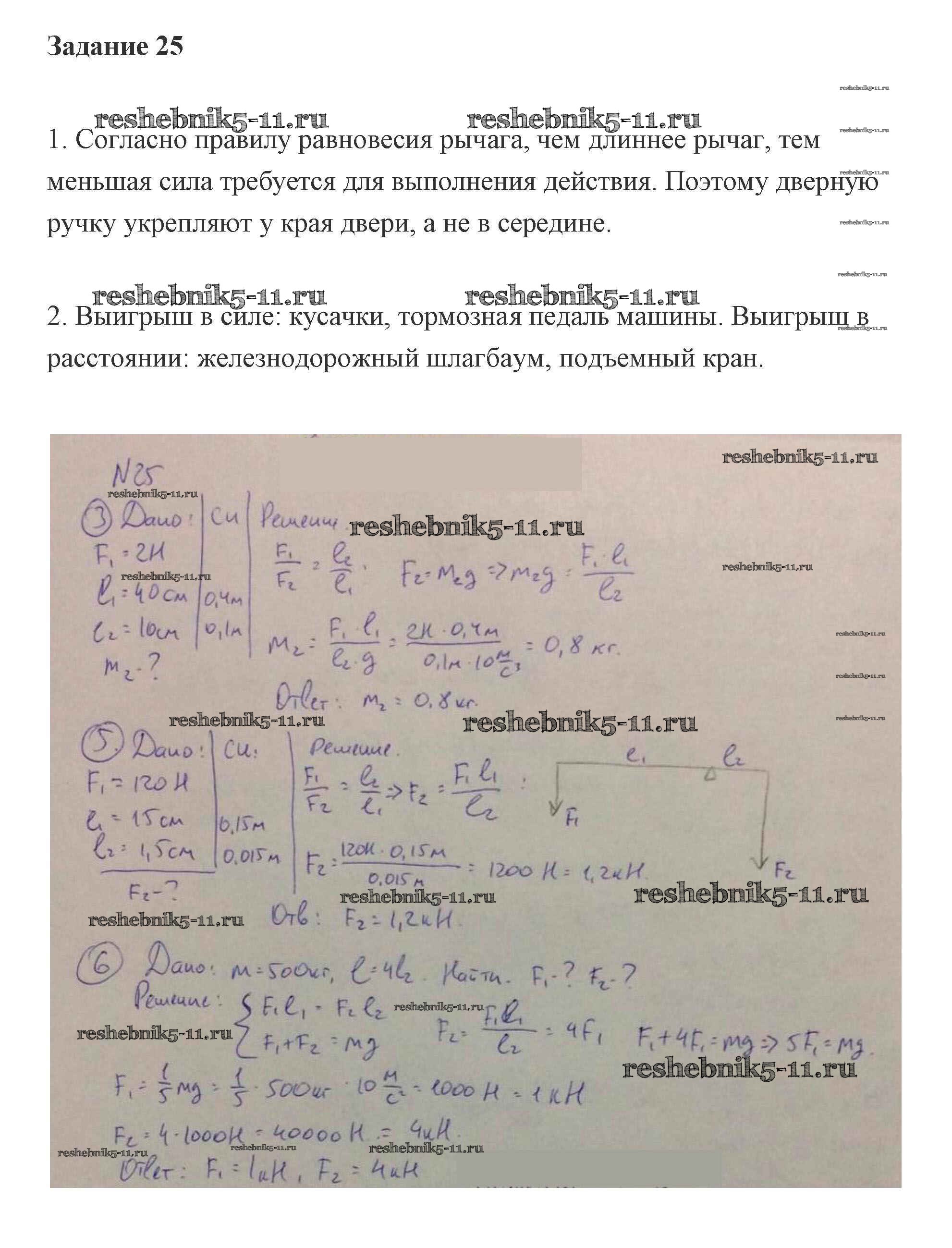 Готовая домашняя работа с ответами по Физике за 7 класс Пурышева, Важеевская Учебник Дрофа 2011 ФГОС - Задания 25