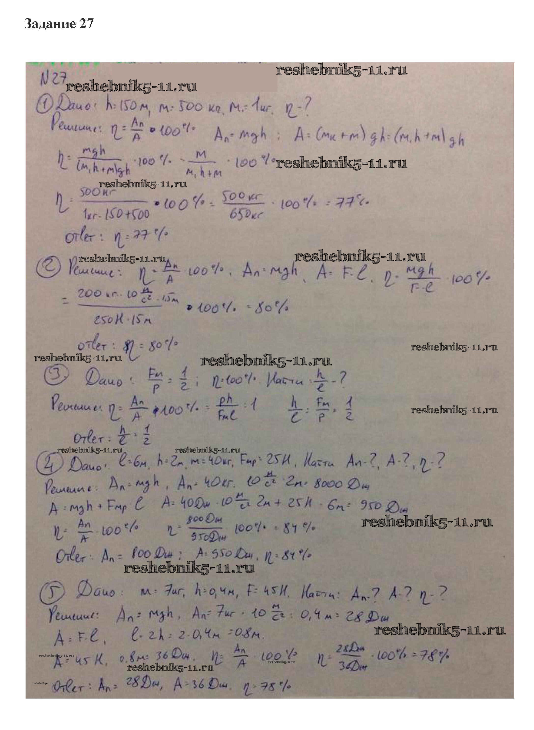 Готовая домашняя работа с ответами по Физике за 7 класс Пурышева, Важеевская Учебник Дрофа 2011 ФГОС - Задания 27