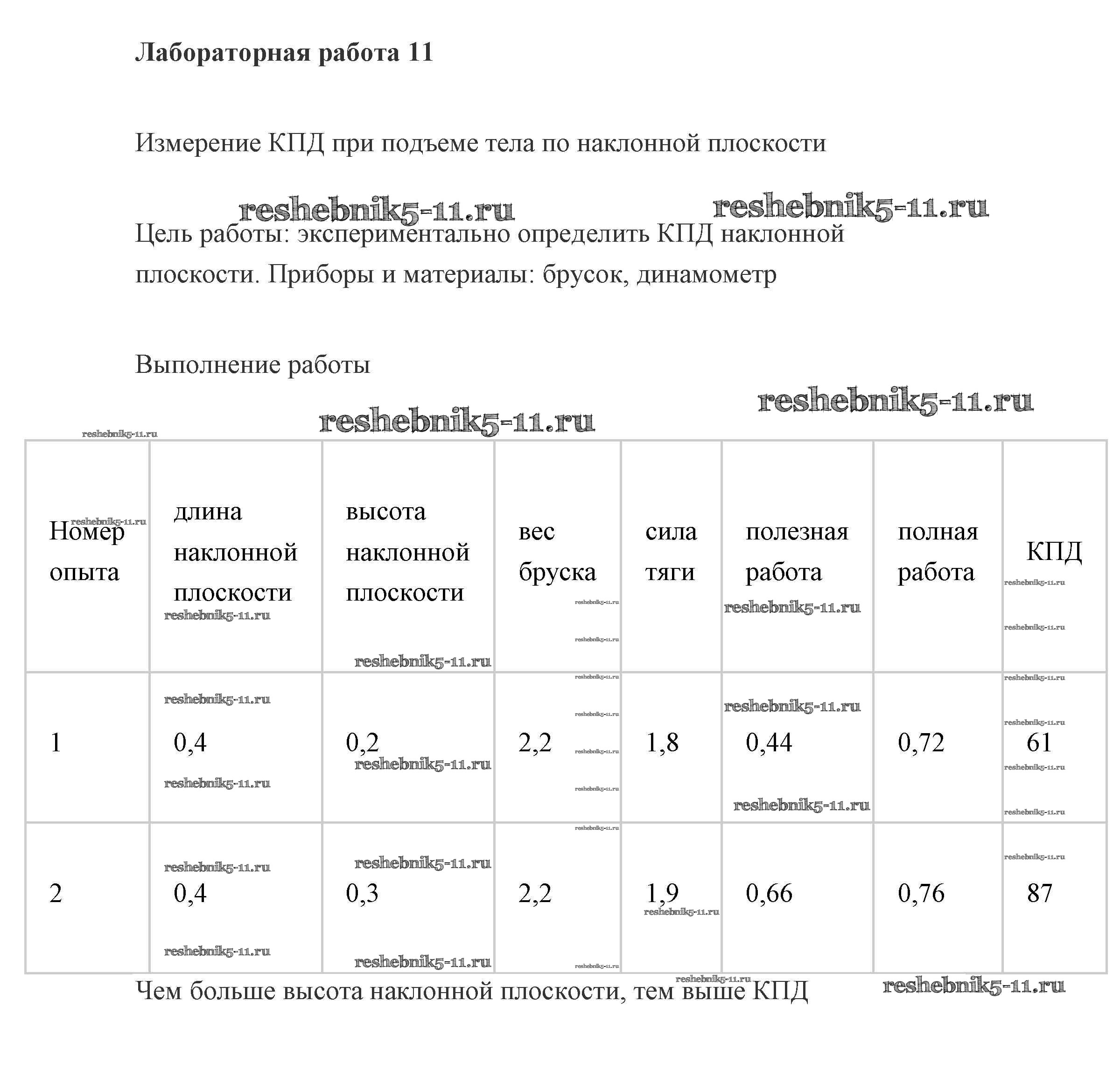 Готовая домашняя работа с ответами по Физике за 7 класс Пурышева, Важеевская Учебник Дрофа 2011 ФГОС - Лабораторные работы 11