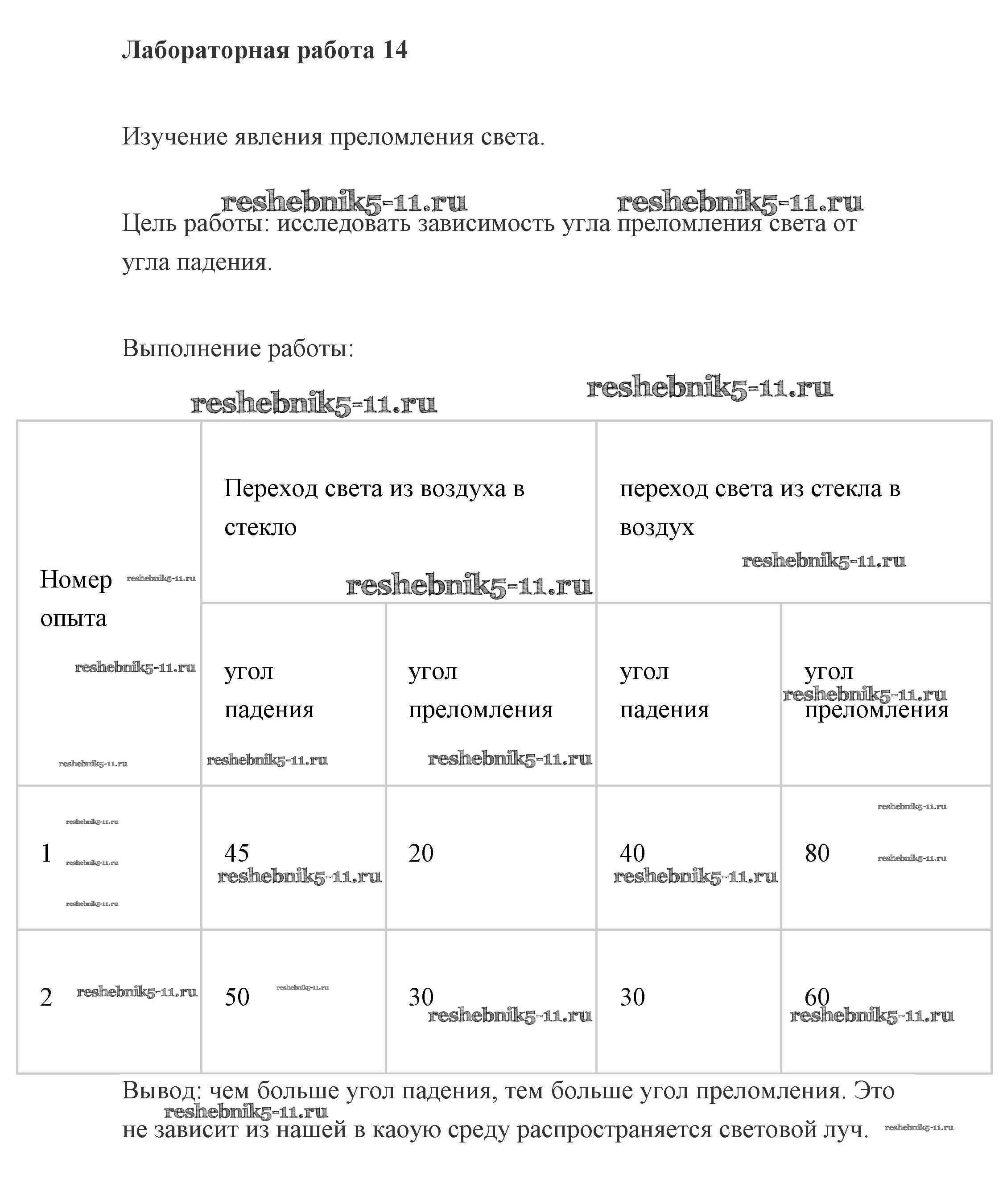 Готовая домашняя работа с ответами по Физике за 7 класс Пурышева, Важеевская Учебник Дрофа 2011 ФГОС - Лабораторные работы 14