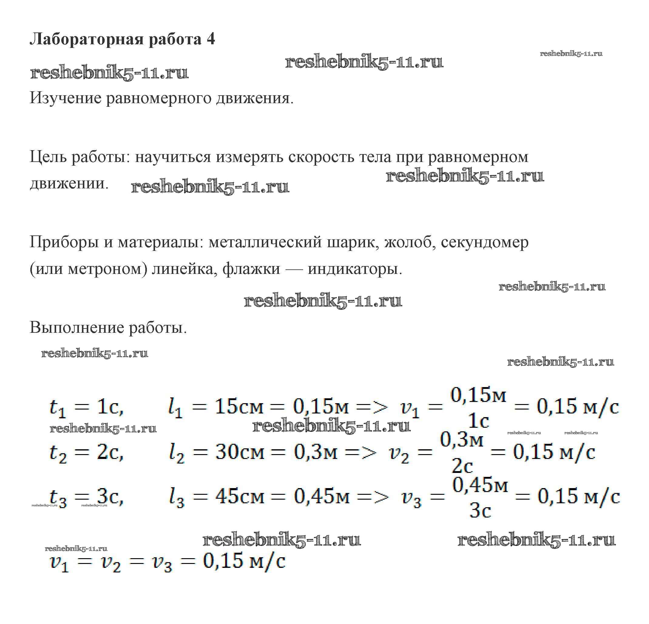 Готовая домашняя работа с ответами по Физике за 7 класс Пурышева, Важеевская Учебник Дрофа 2011 ФГОС - Лабораторные работы 4