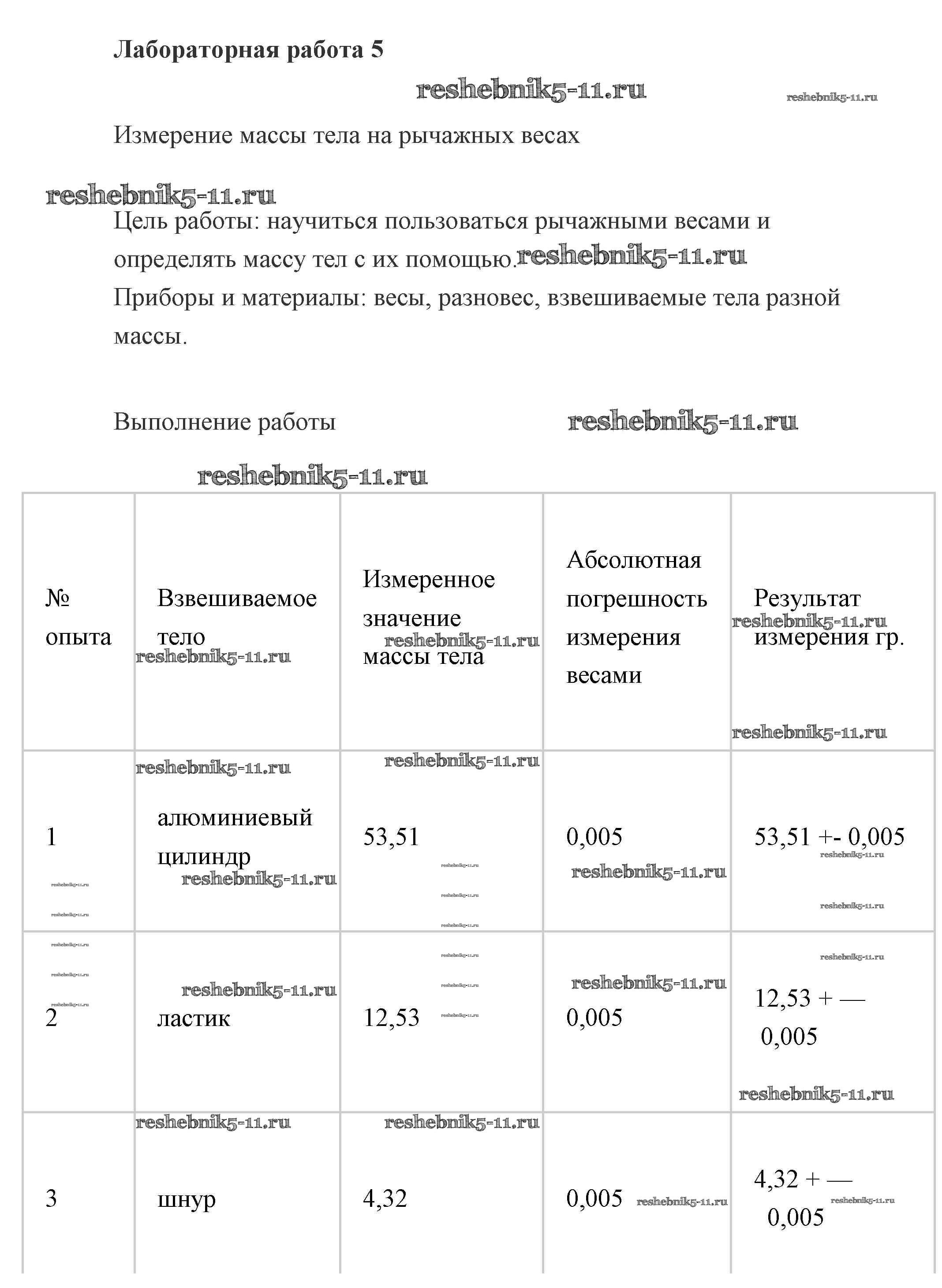Готовая домашняя работа с ответами по Физике за 7 класс Пурышева, Важеевская Учебник Дрофа 2011 ФГОС - Лабораторные работы 5