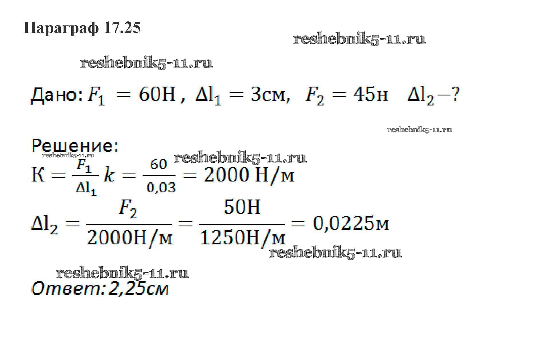 Готовая домашняя работа с ответами по Физике за 7 класс Генденштейн, Кирик, Гельфгат Задачник Мнемозина 2015 ФГОС - Параграфы 17 (Задания) 25