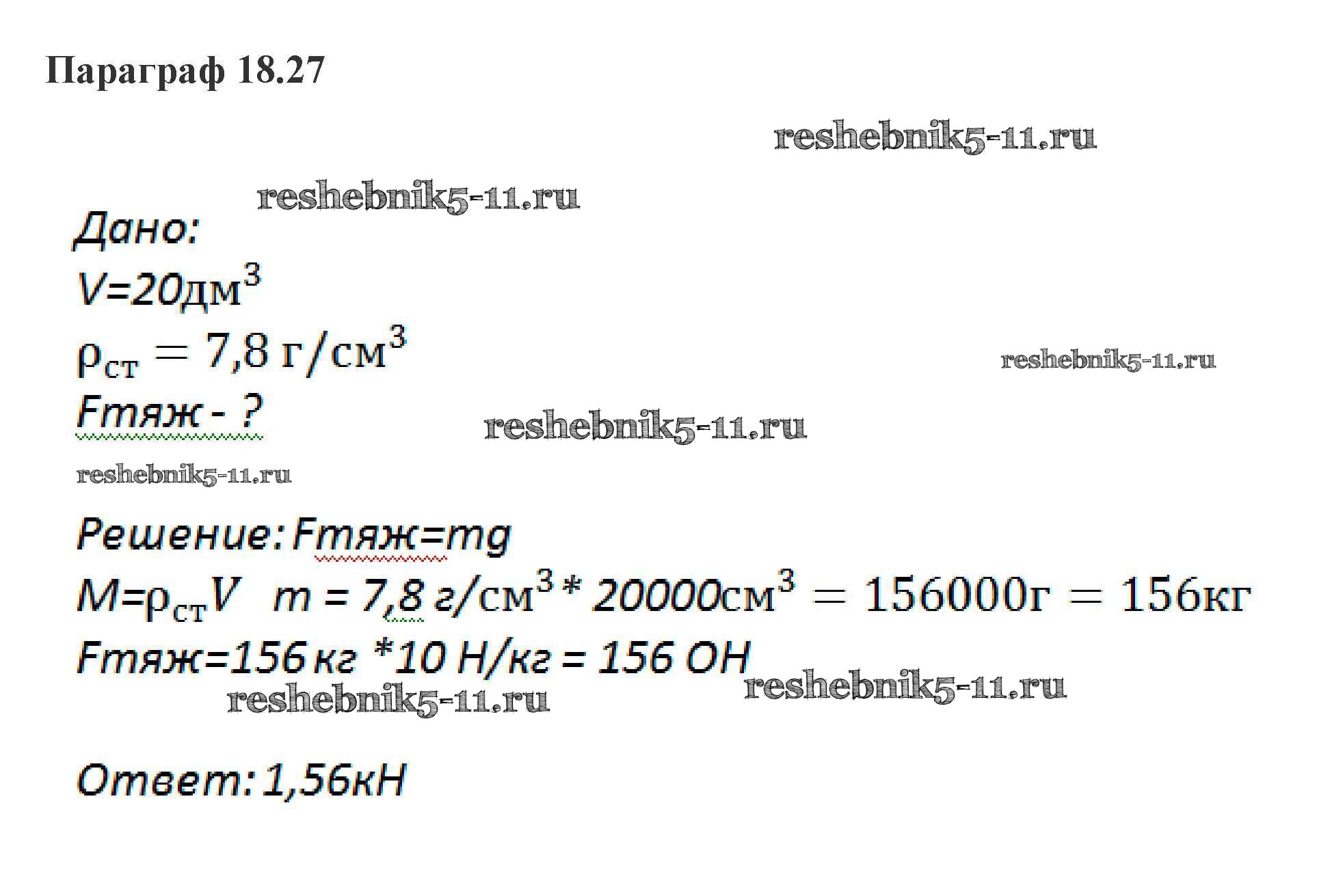 Готовая домашняя работа с ответами по Физике за 7 класс Генденштейн, Кирик, Гельфгат Задачник Мнемозина 2015 ФГОС - Параграфы 18 (Задания) 27