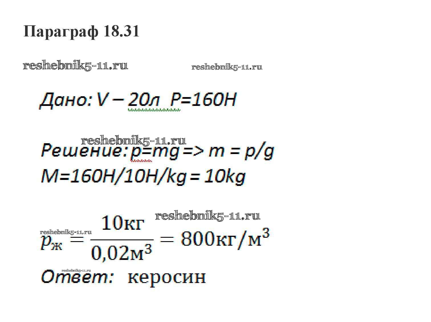Готовая домашняя работа с ответами по Физике за 7 класс Генденштейн, Кирик, Гельфгат Задачник Мнемозина 2015 ФГОС - Параграфы 18 (Задания) 31