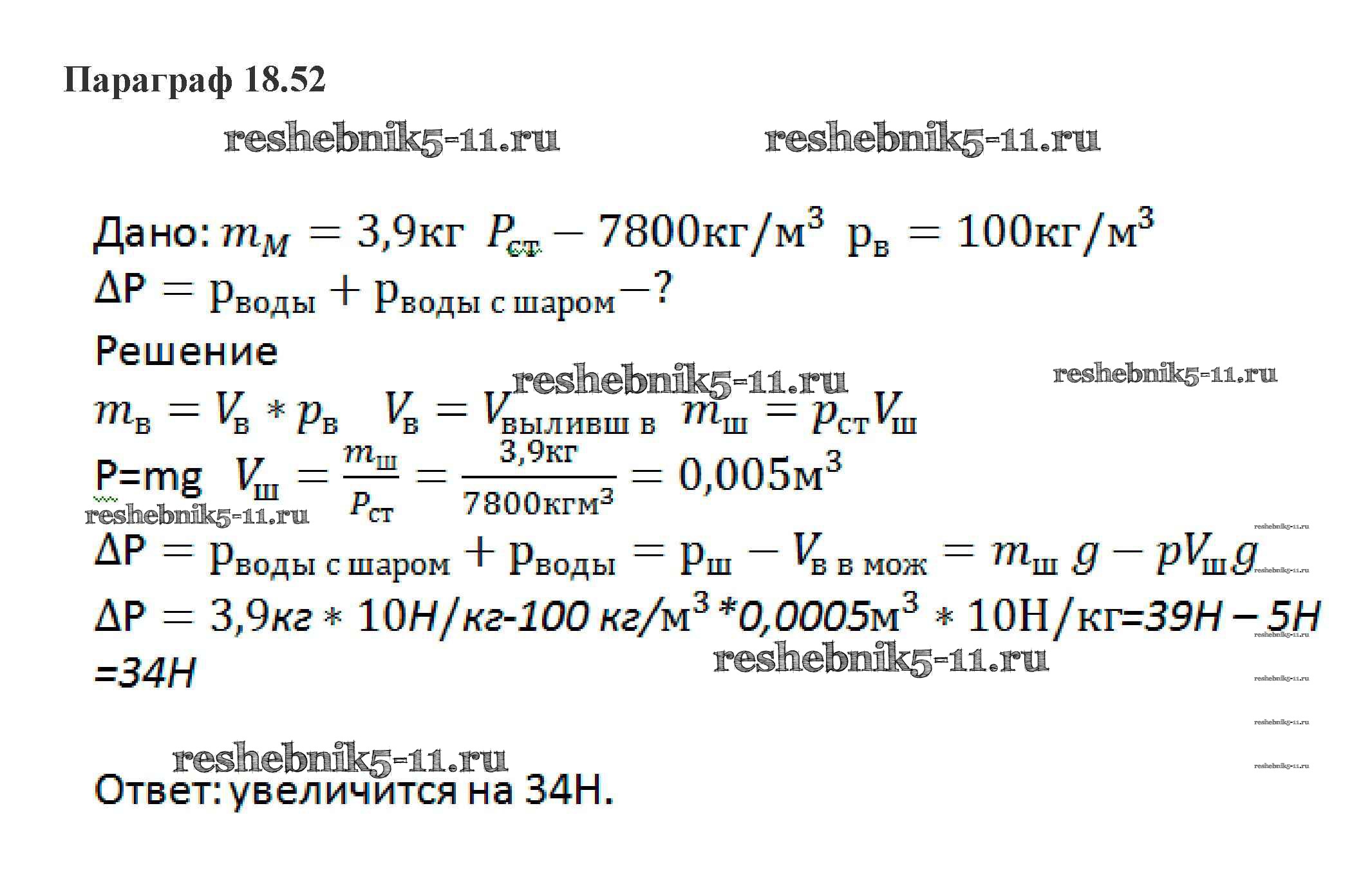 Готовая домашняя работа с ответами по Физике за 7 класс Генденштейн, Кирик, Гельфгат Задачник Мнемозина 2015 ФГОС - Параграфы 18 (Задания) 52
