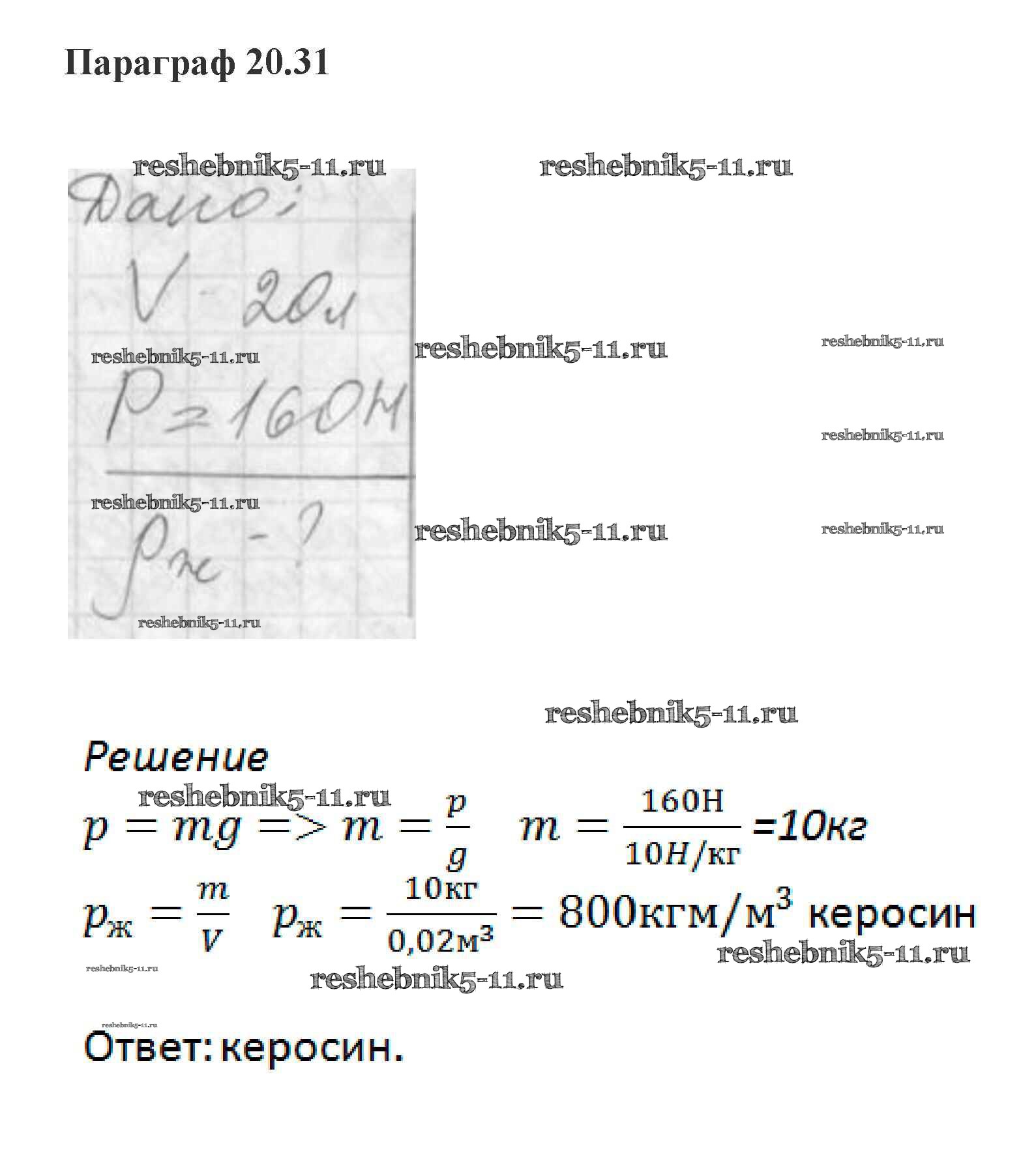 Готовая домашняя работа с ответами по Физике за 7 класс Генденштейн, Кирик, Гельфгат Задачник Мнемозина 2015 ФГОС - Параграфы 20 (Задания) 31