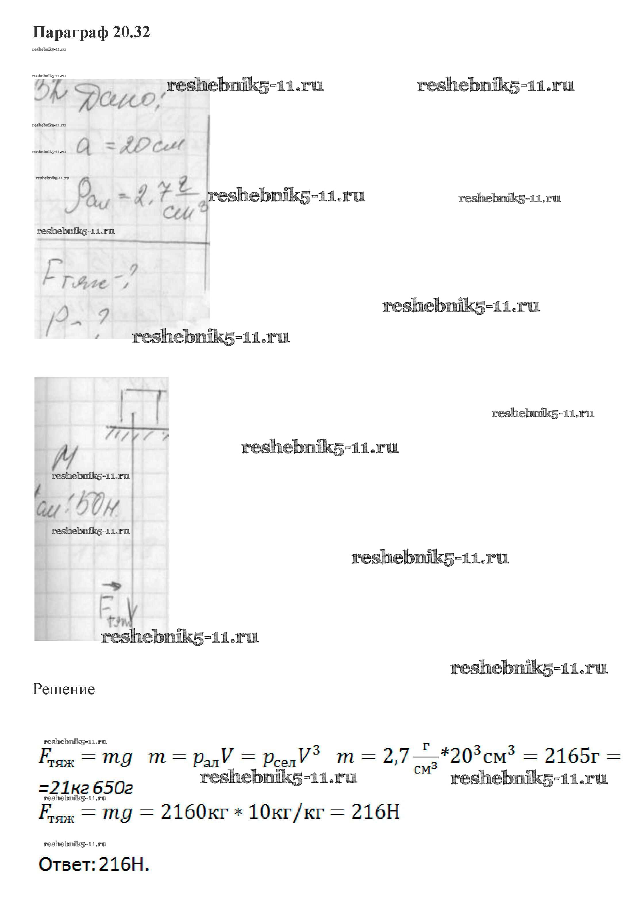 Готовая домашняя работа с ответами по Физике за 7 класс Генденштейн, Кирик, Гельфгат Задачник Мнемозина 2015 ФГОС - Параграфы 20 (Задания) 32