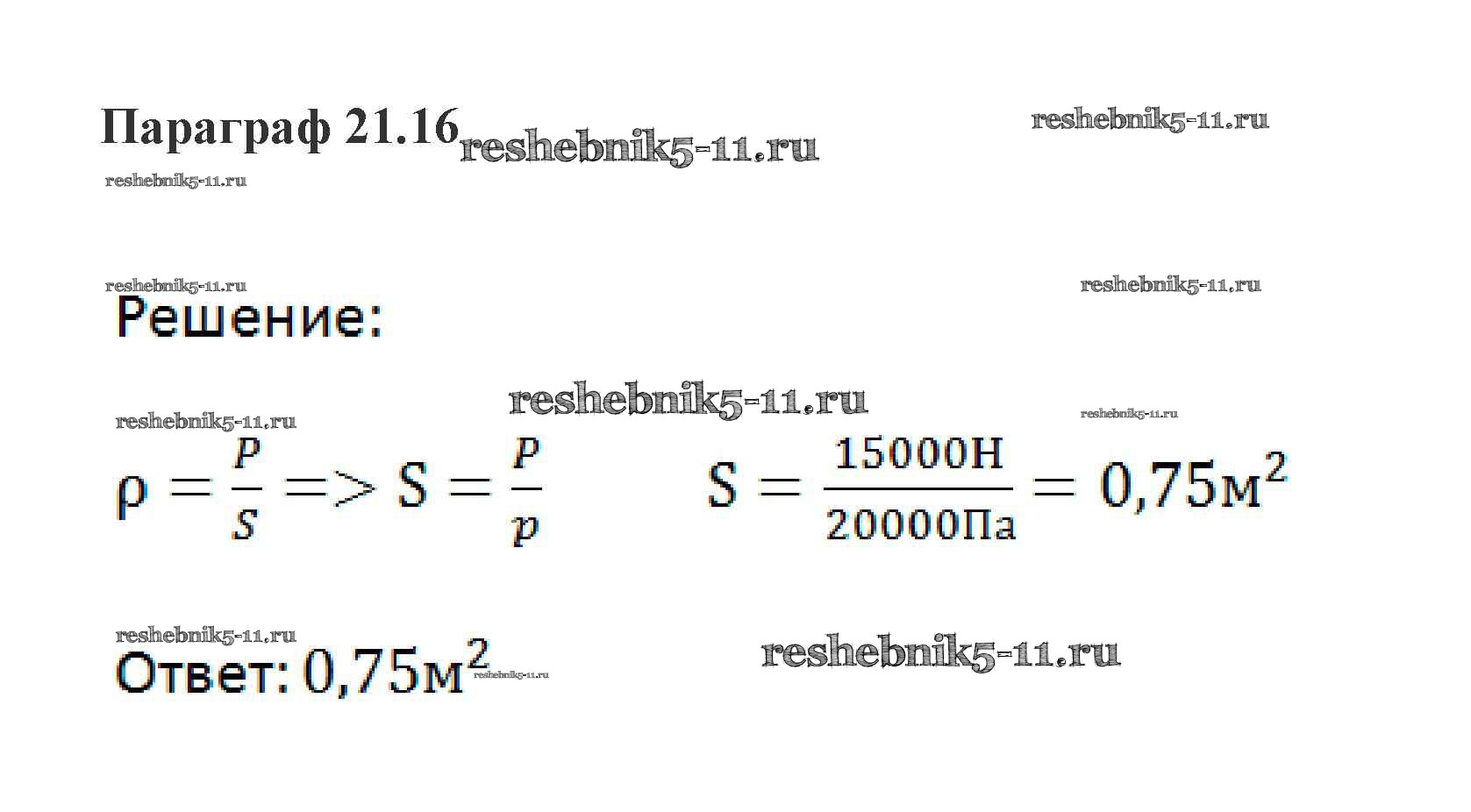 Готовая домашняя работа с ответами по Физике за 7 класс Генденштейн, Кирик, Гельфгат Задачник Мнемозина 2015 ФГОС - Параграфы 21 (Задания) 16