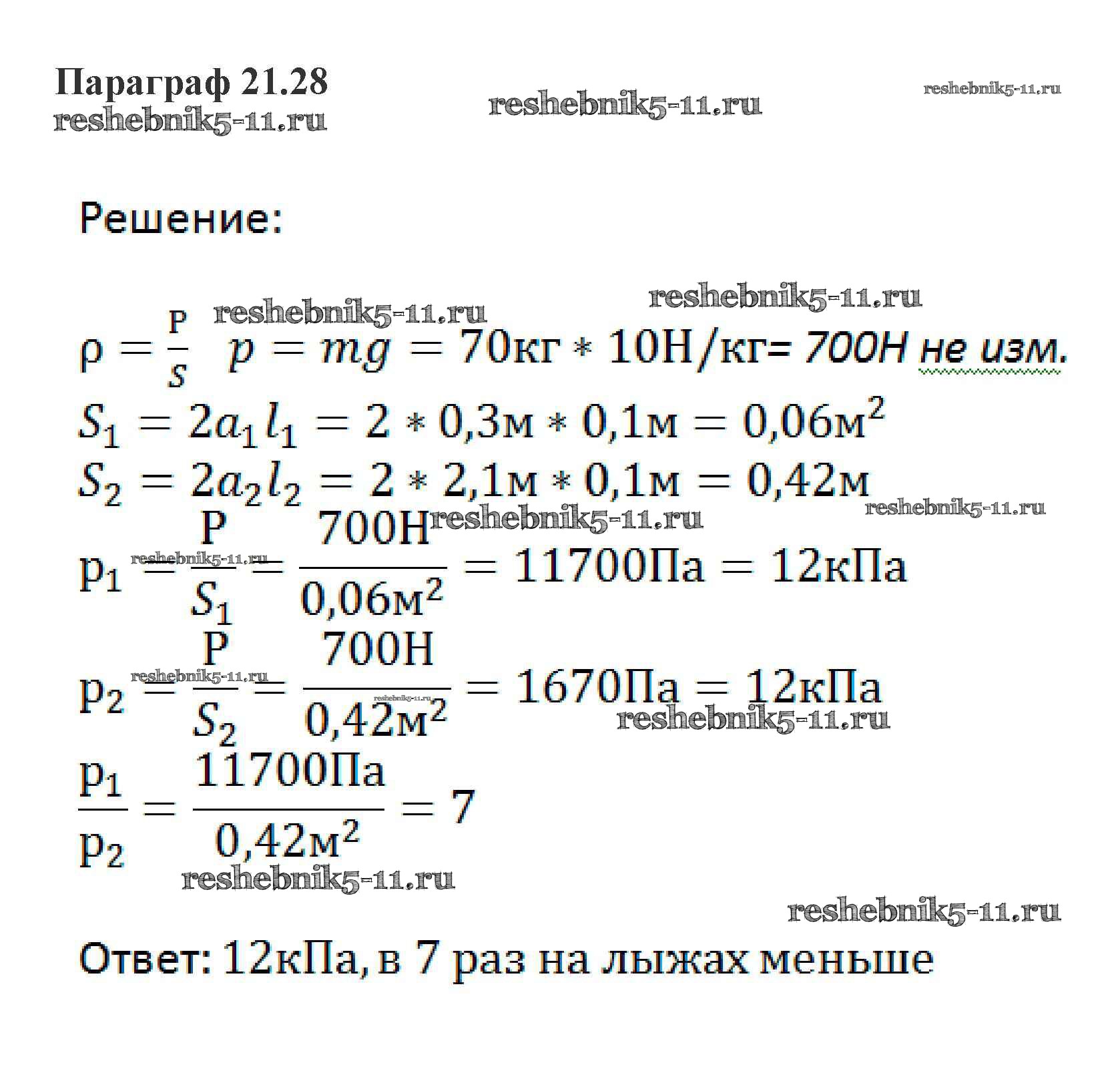 Готовая домашняя работа с ответами по Физике за 7 класс Генденштейн, Кирик, Гельфгат Задачник Мнемозина 2015 ФГОС - Параграфы 21 (Задания) 28