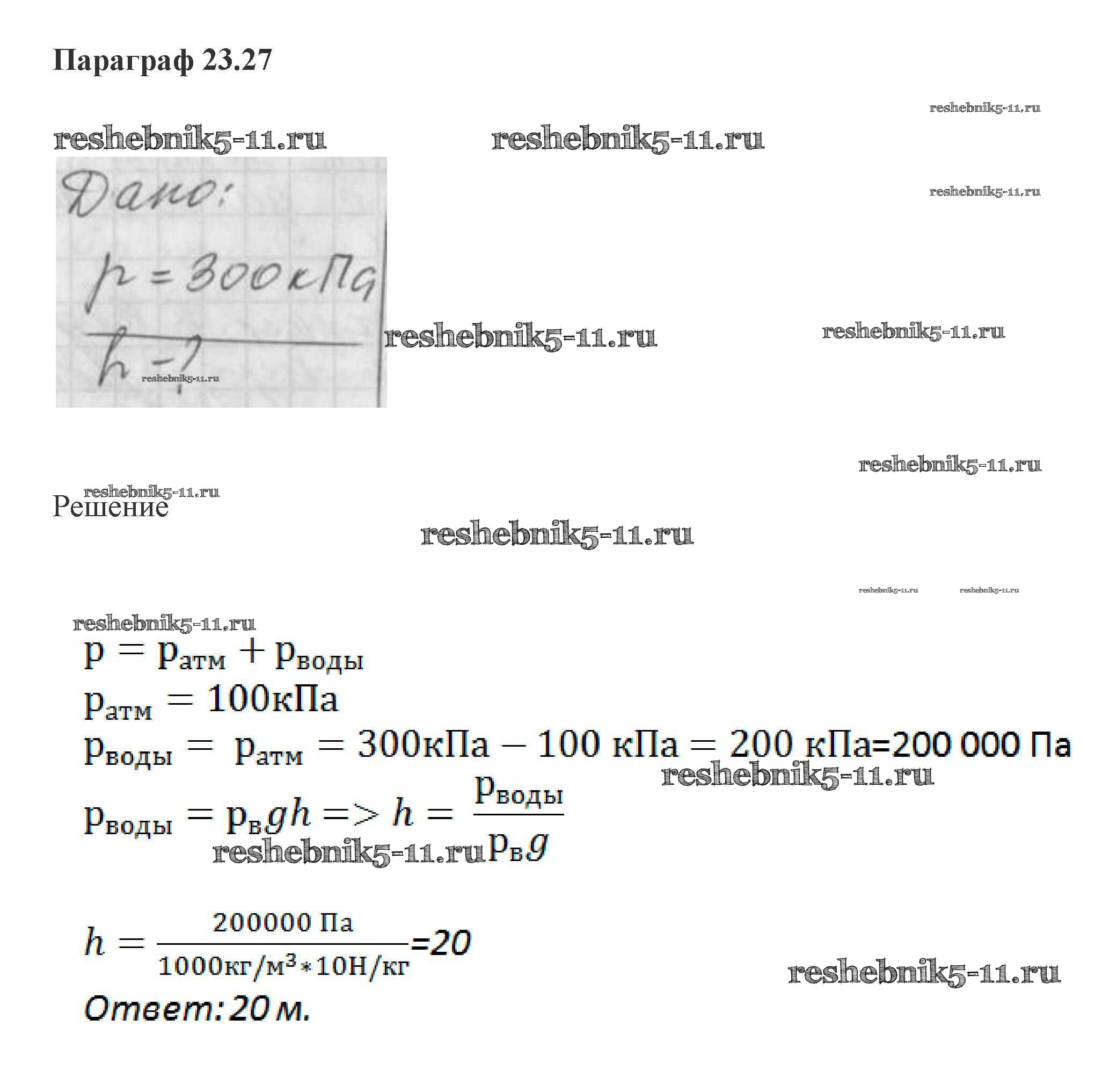 Готовая домашняя работа с ответами по Физике за 7 класс Генденштейн, Кирик, Гельфгат Задачник Мнемозина 2015 ФГОС - Параграфы 23 (Задания) 27