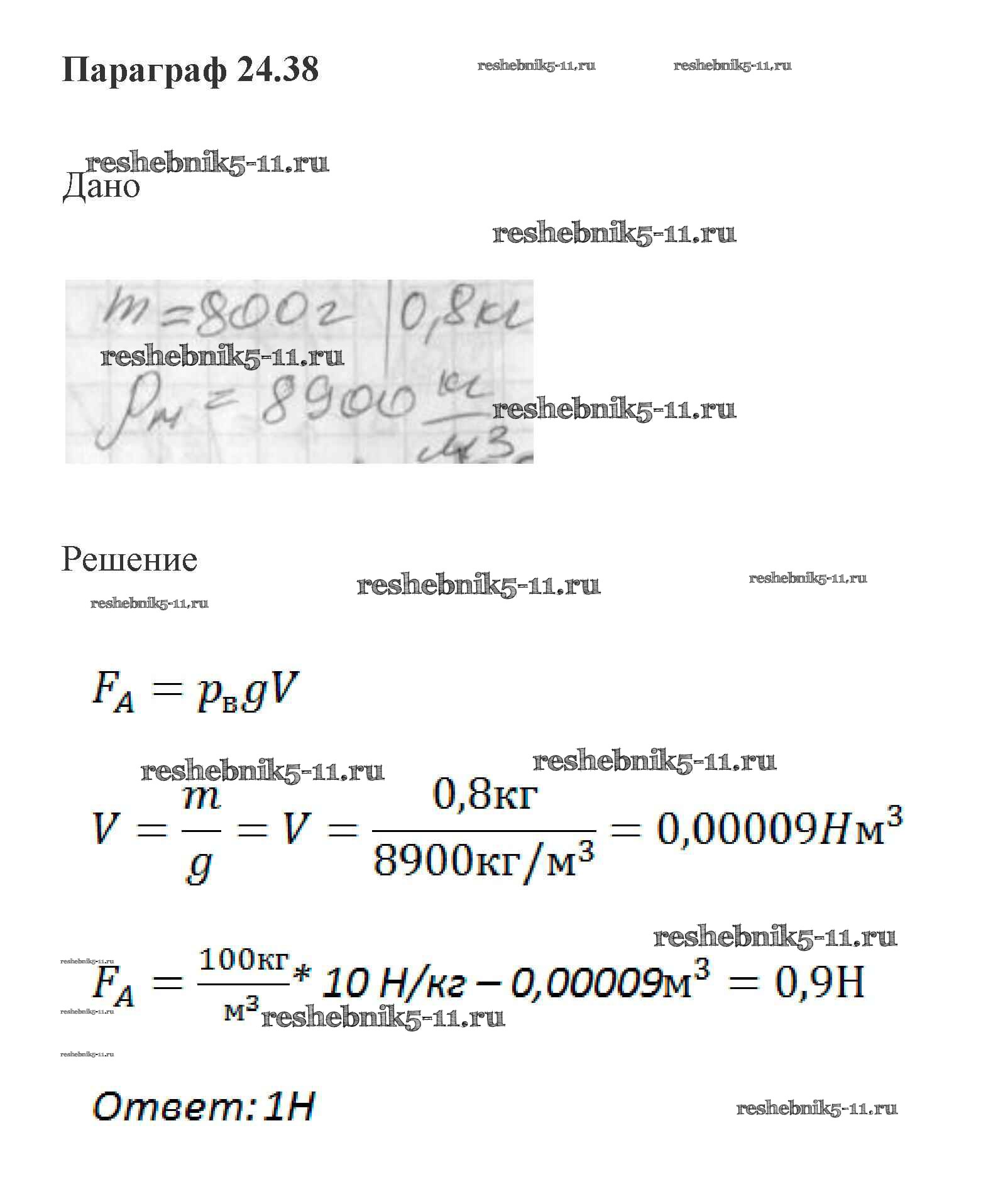 Готовая домашняя работа с ответами по Физике за 7 класс Генденштейн, Кирик, Гельфгат Задачник Мнемозина 2015 ФГОС - Параграфы 24 (Задания) 38