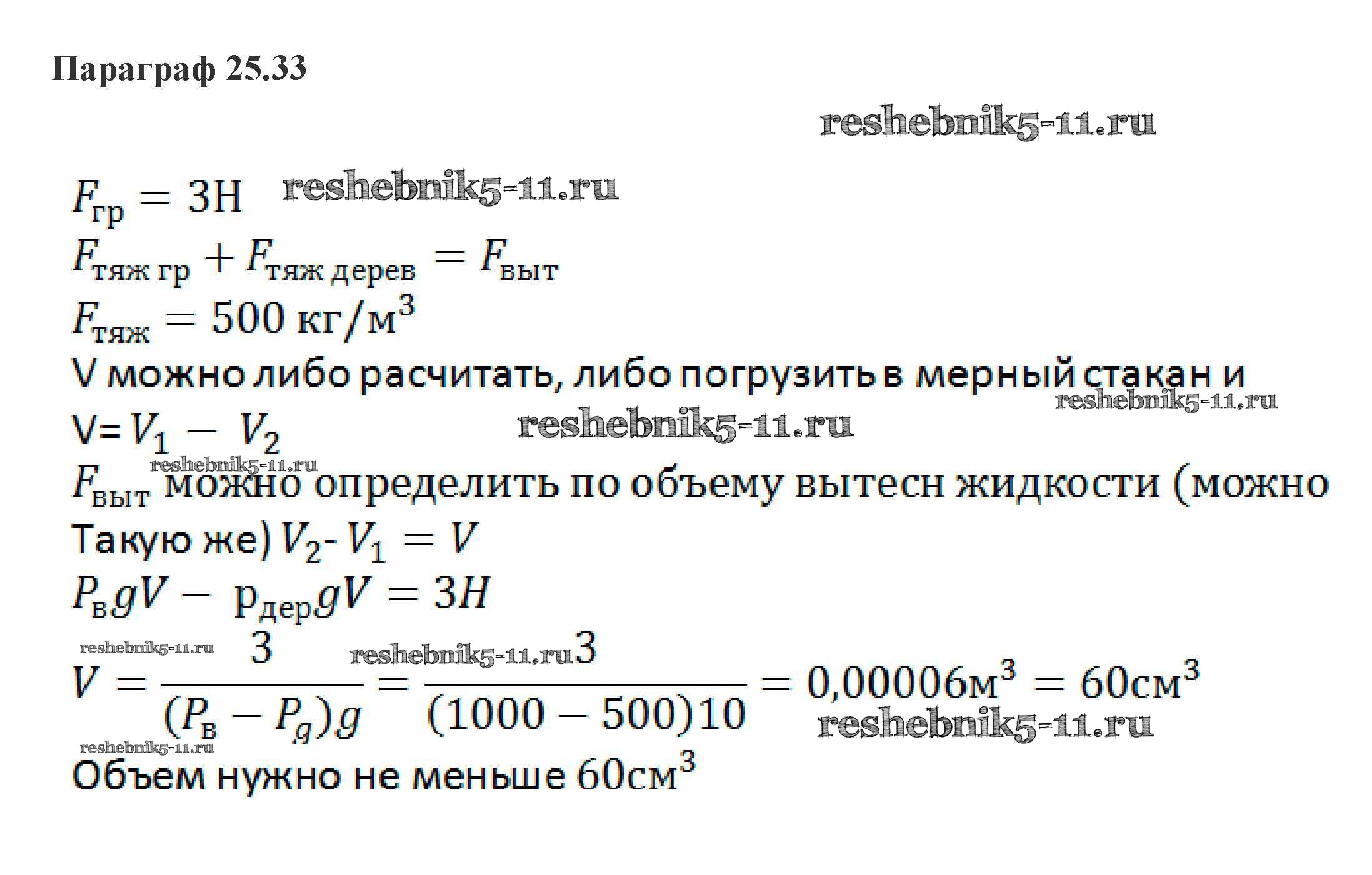 Готовая домашняя работа с ответами по Физике за 7 класс Генденштейн, Кирик, Гельфгат Задачник Мнемозина 2015 ФГОС - Параграфы 25 (Задания) 33