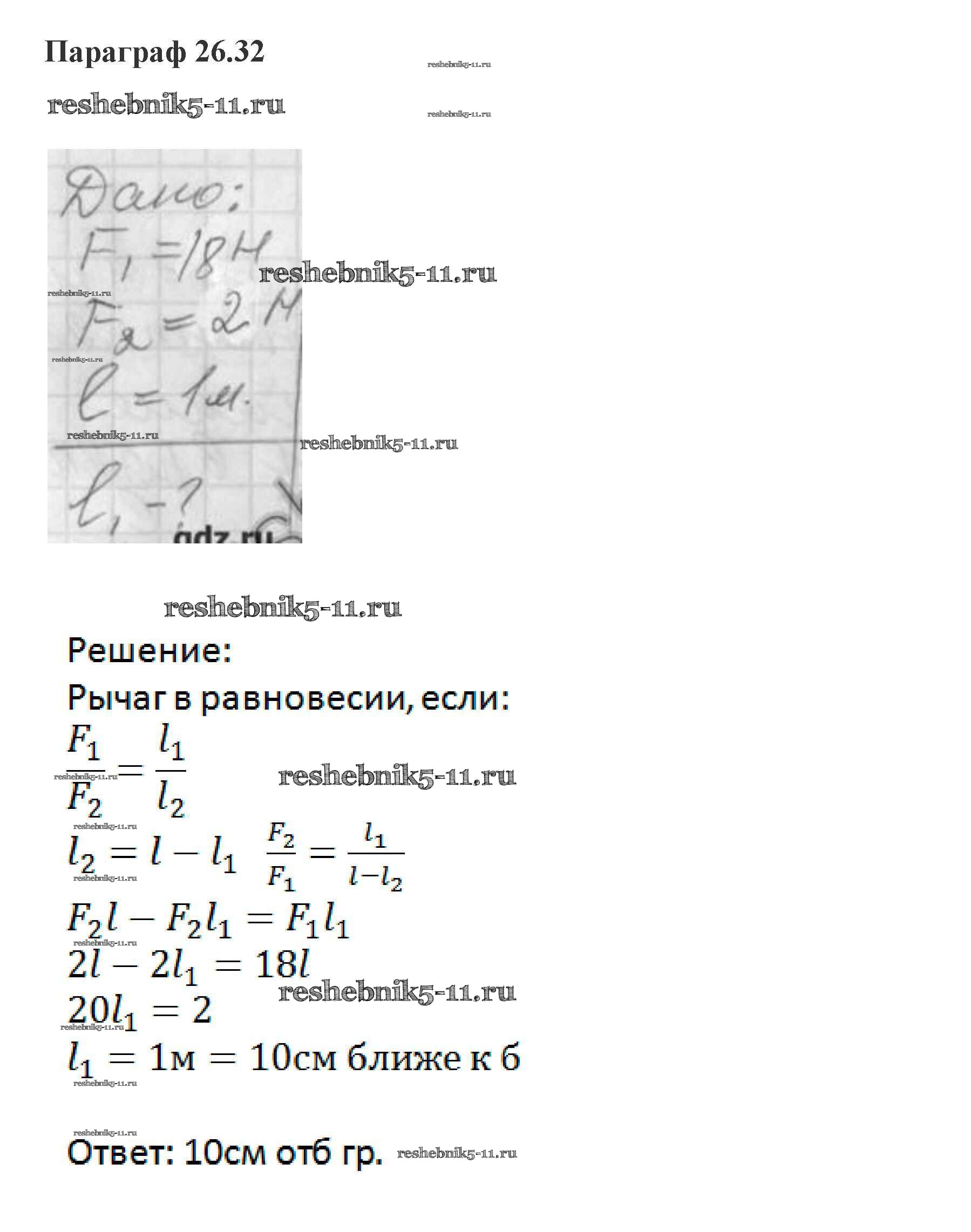 Готовая домашняя работа с ответами по Физике за 7 класс Генденштейн, Кирик, Гельфгат Задачник Мнемозина 2015 ФГОС - Параграфы 26 (Задания) 32