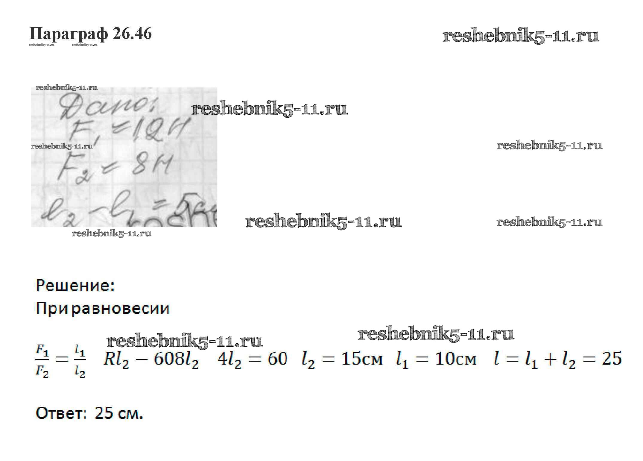 Готовая домашняя работа с ответами по Физике за 7 класс Генденштейн, Кирик, Гельфгат Задачник Мнемозина 2015 ФГОС - Параграфы 26 (Задания) 46