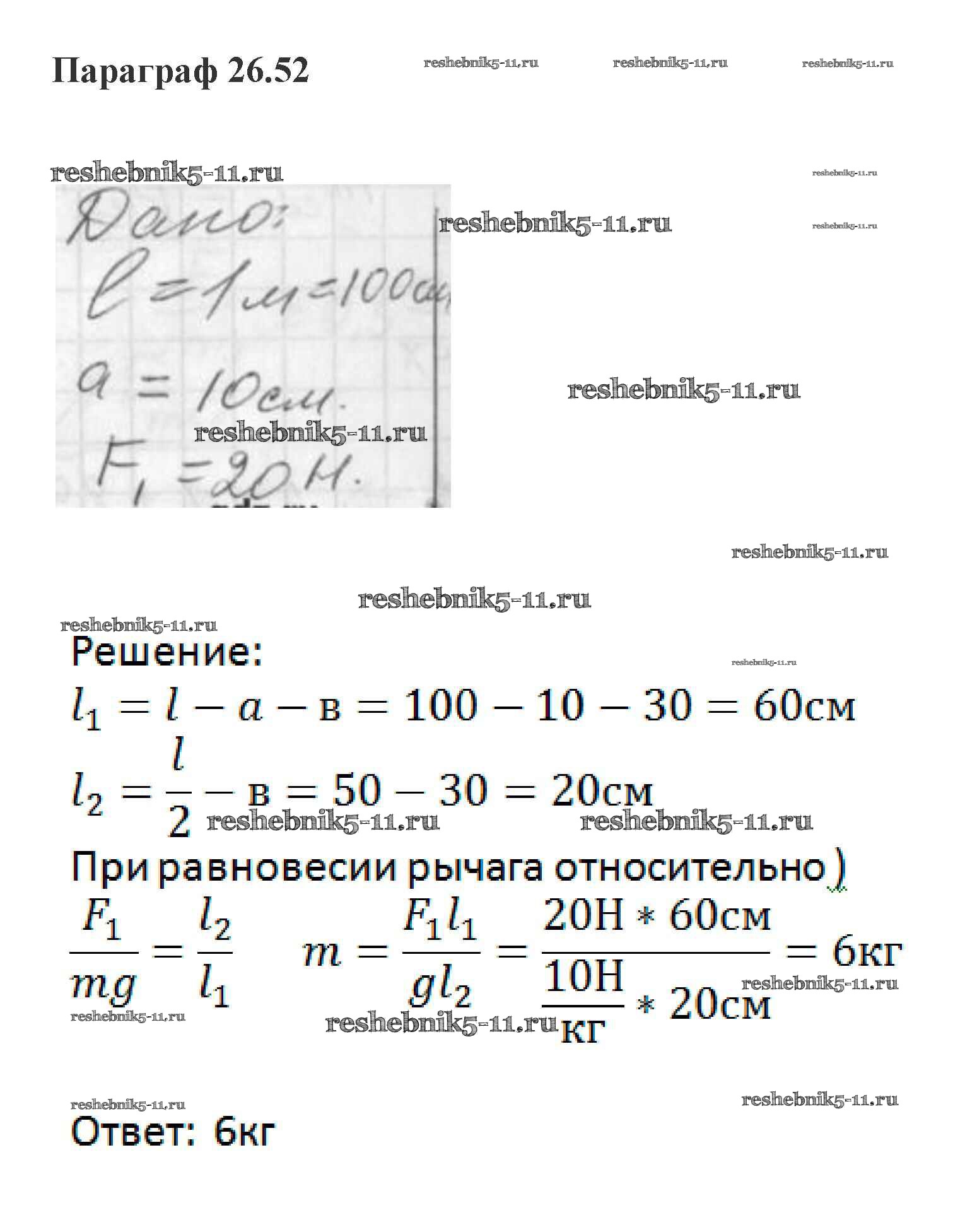 Готовая домашняя работа с ответами по Физике за 7 класс Генденштейн, Кирик, Гельфгат Задачник Мнемозина 2015 ФГОС - Параграфы 26 (Задания) 52