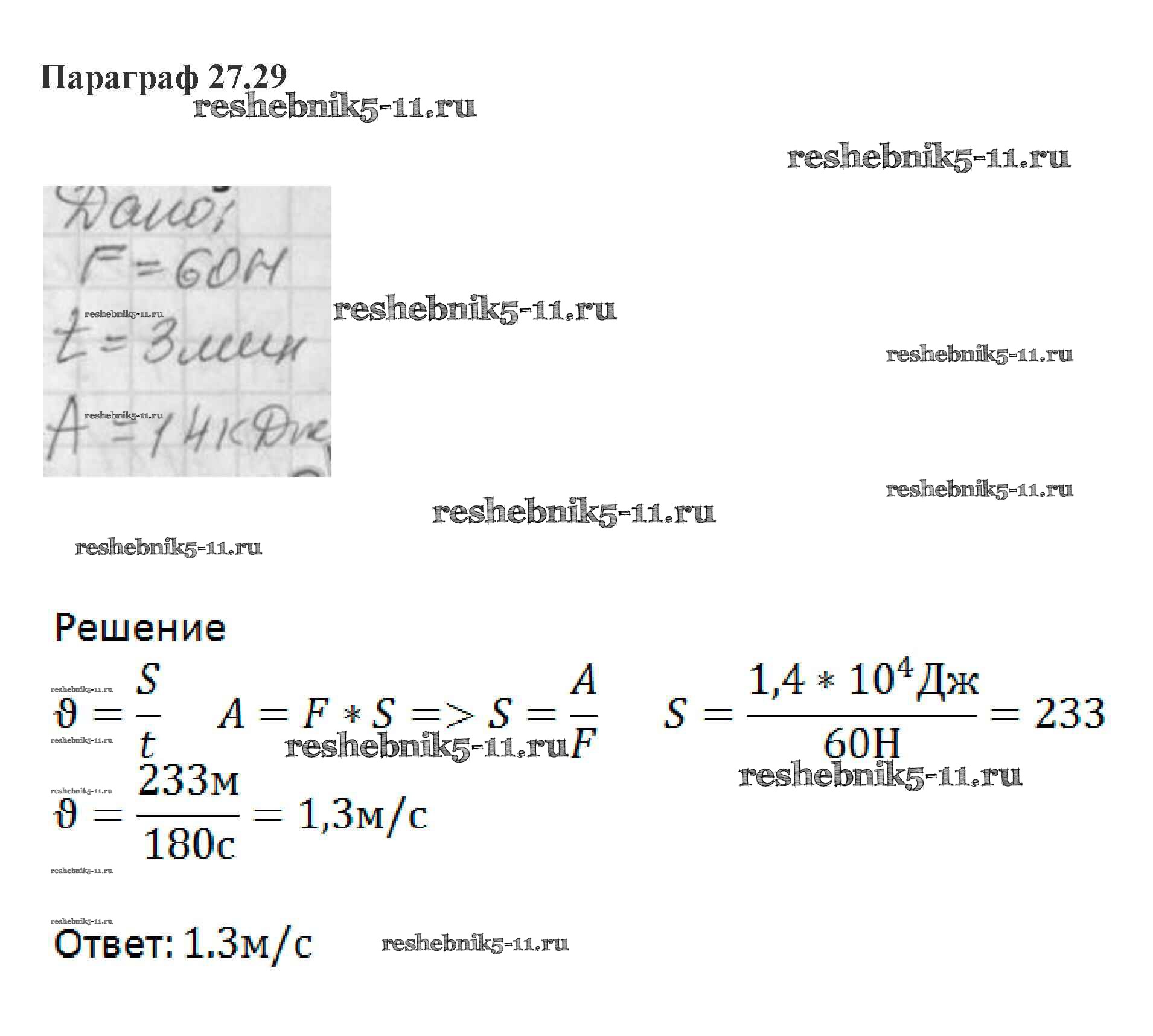 Готовая домашняя работа с ответами по Физике за 7 класс Генденштейн, Кирик, Гельфгат Задачник Мнемозина 2015 ФГОС - Параграфы 27 (Задания) 29
