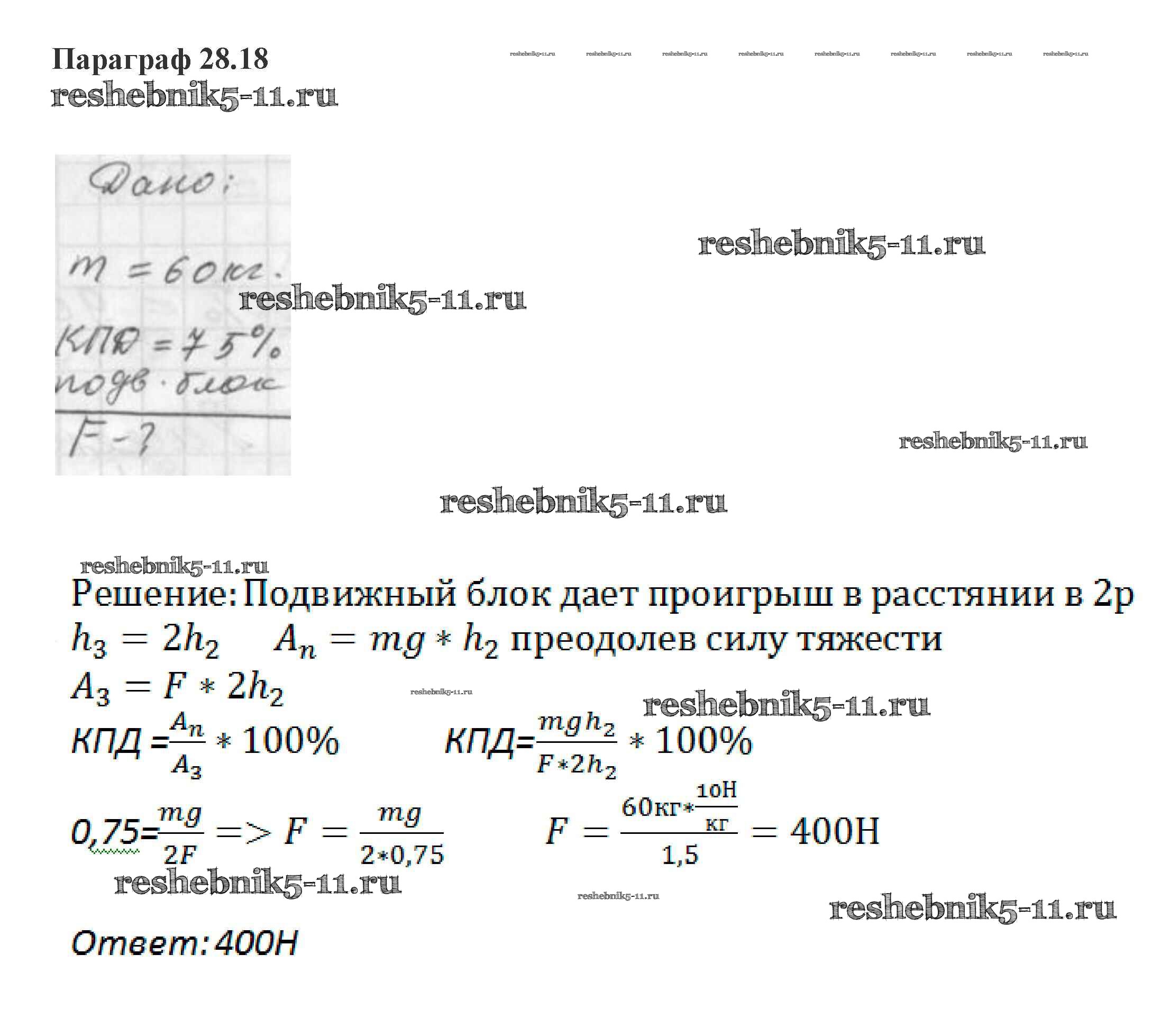 Готовая домашняя работа с ответами по Физике за 7 класс Генденштейн, Кирик, Гельфгат Задачник Мнемозина 2015 ФГОС - Параграфы 28 (Задания) 18