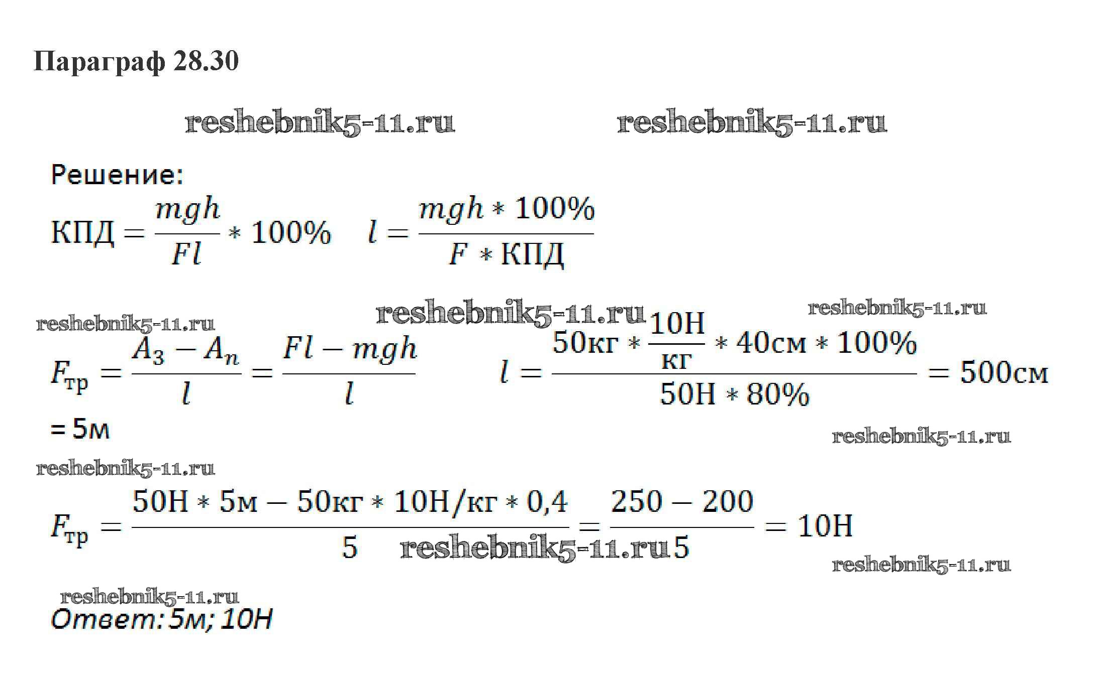 Готовая домашняя работа с ответами по Физике за 7 класс Генденштейн, Кирик, Гельфгат Задачник Мнемозина 2015 ФГОС - Параграфы 28 (Задания) 30