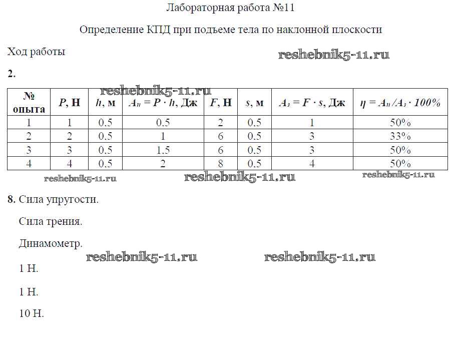 Готовая домашняя работа с ответами по Физике за 7 класс Минькова, Иванова Тетрадь для лабораторных работ УМК Экзамен 2017 ФГОС - Лабораторные работы ЛР №11. Определение КПД при подъеме тела по наклонной плоскости