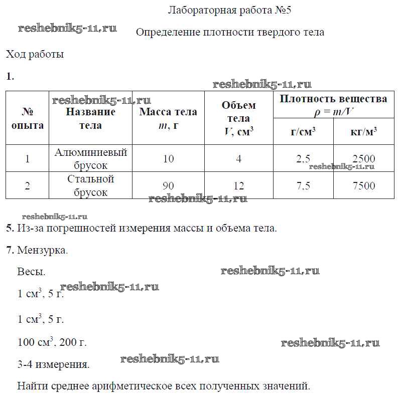 Готовая домашняя работа с ответами по Физике за 7 класс Минькова, Иванова Тетрадь для лабораторных работ УМК Экзамен 2017 ФГОС - Лабораторные работы ЛР №5. Определение плотности твердого тела
