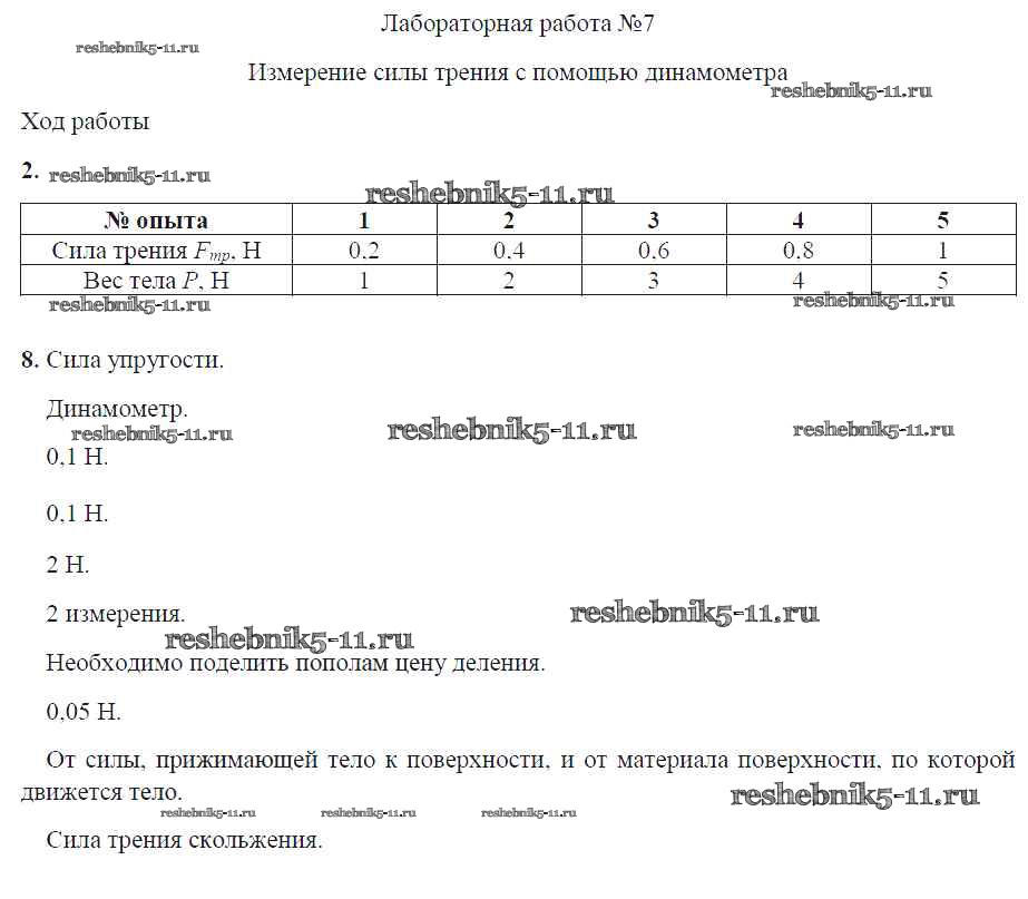 Готовая домашняя работа с ответами по Физике за 7 класс Минькова, Иванова Тетрадь для лабораторных работ УМК Экзамен 2017 ФГОС - Лабораторные работы ЛР №7. Измерение силы трения с помощью динамометра
