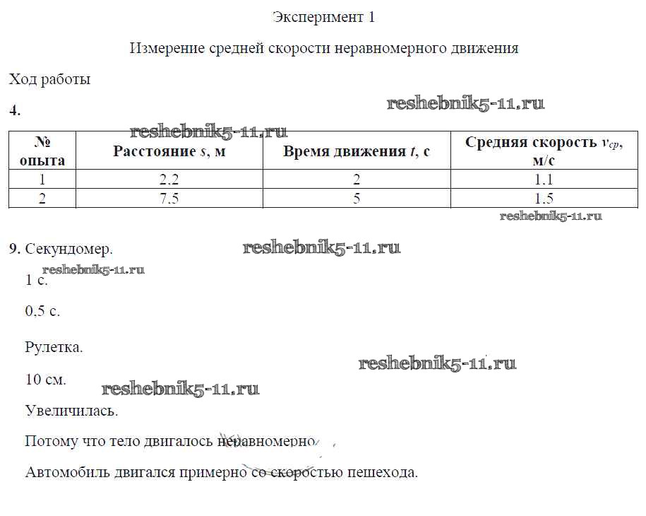 Готовая домашняя работа с ответами по Физике за 7 класс Минькова, Иванова Тетрадь для лабораторных работ УМК Экзамен 2017 ФГОС - Эксперименты Эксперимент 1. Измерение средней скорости неравномерного движения