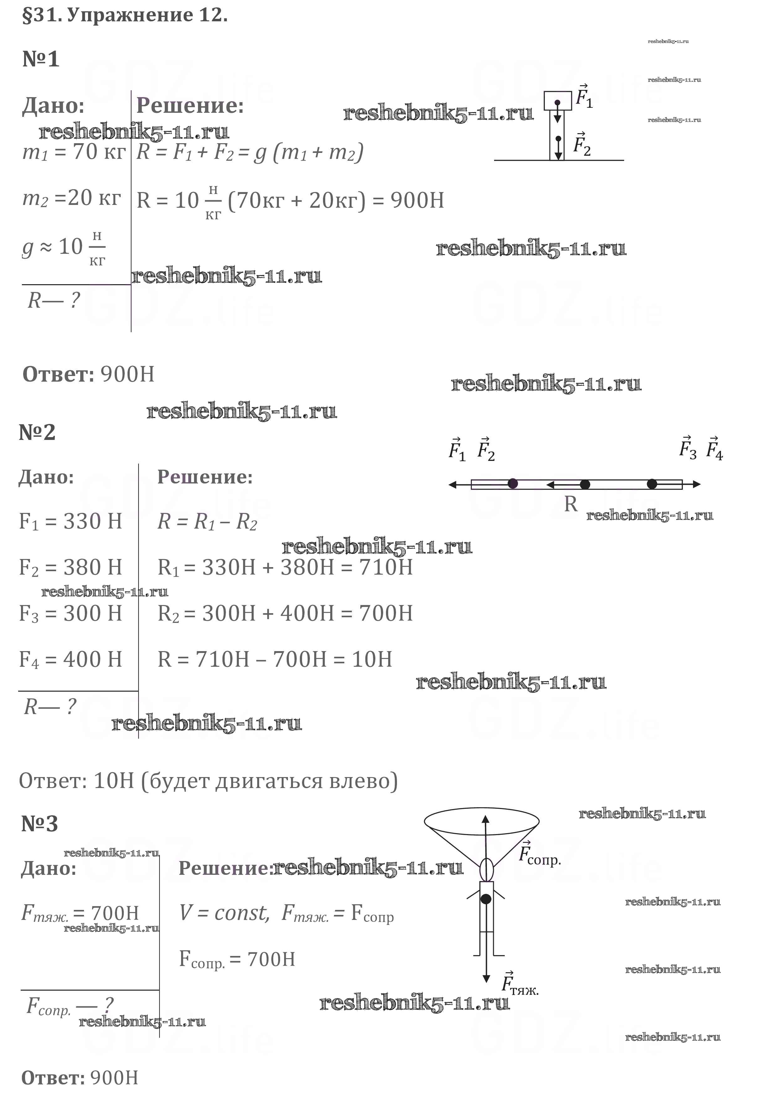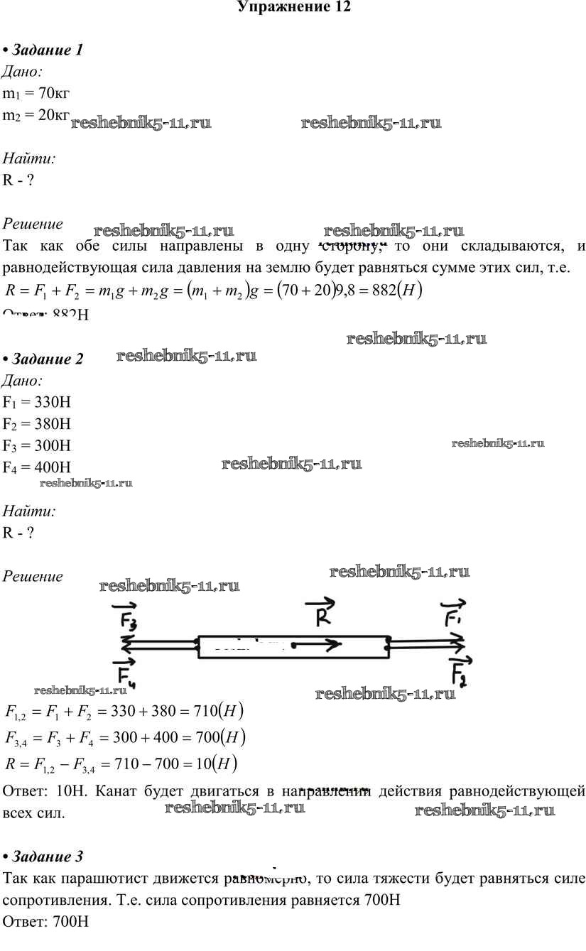 Готовая домашняя работа с ответами по Физике за 7 класс Перышкин Учебник Вертикаль Дрофа 2016 ФГОС - Упражнения 12