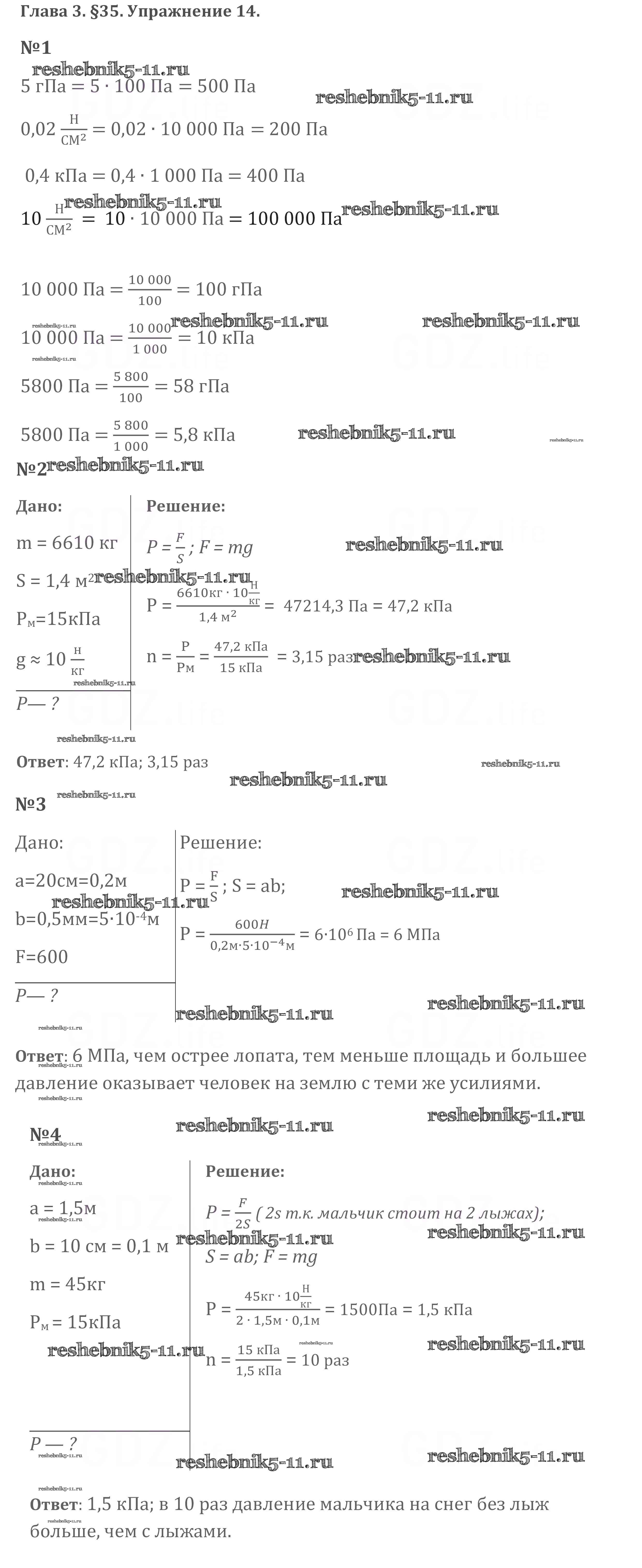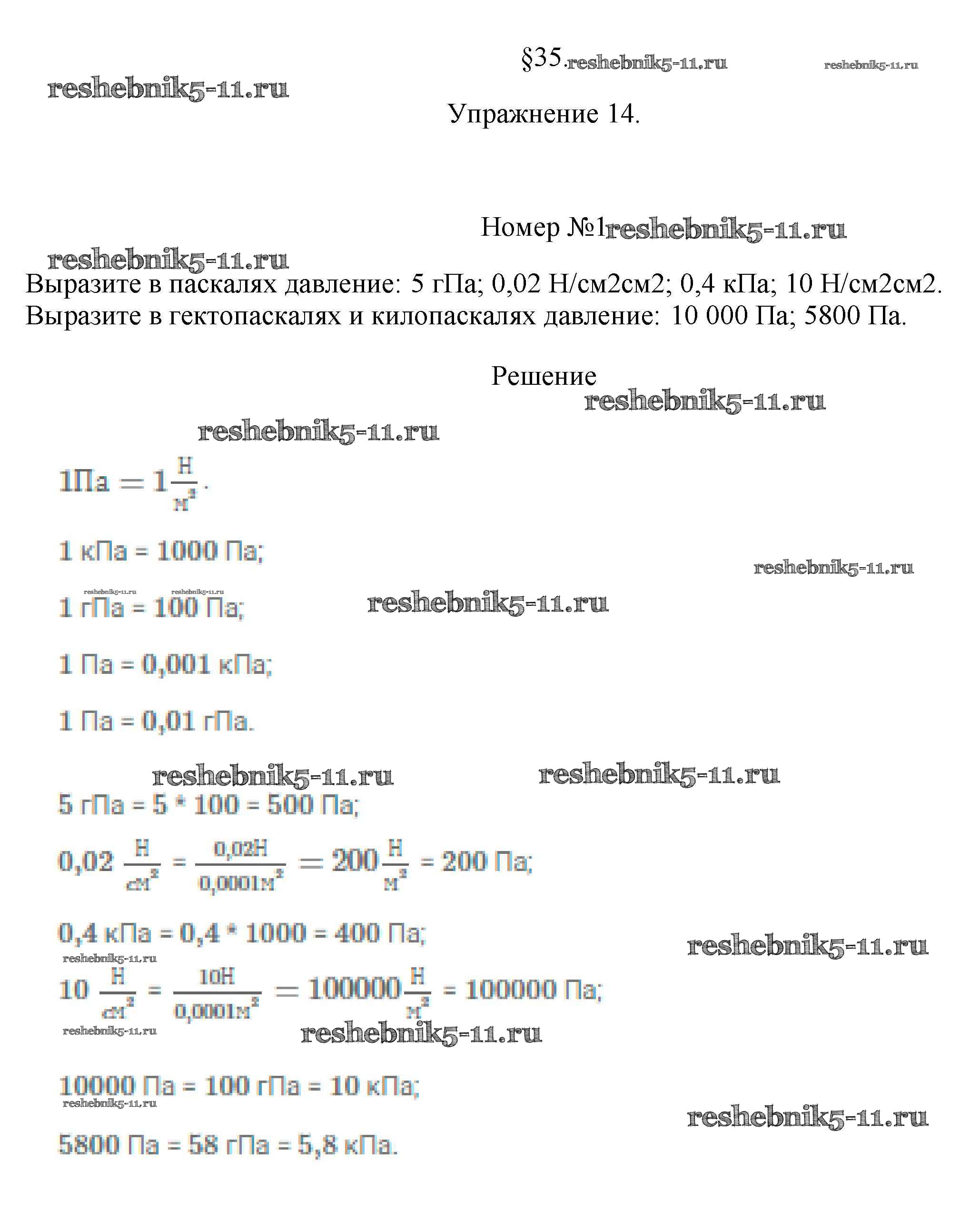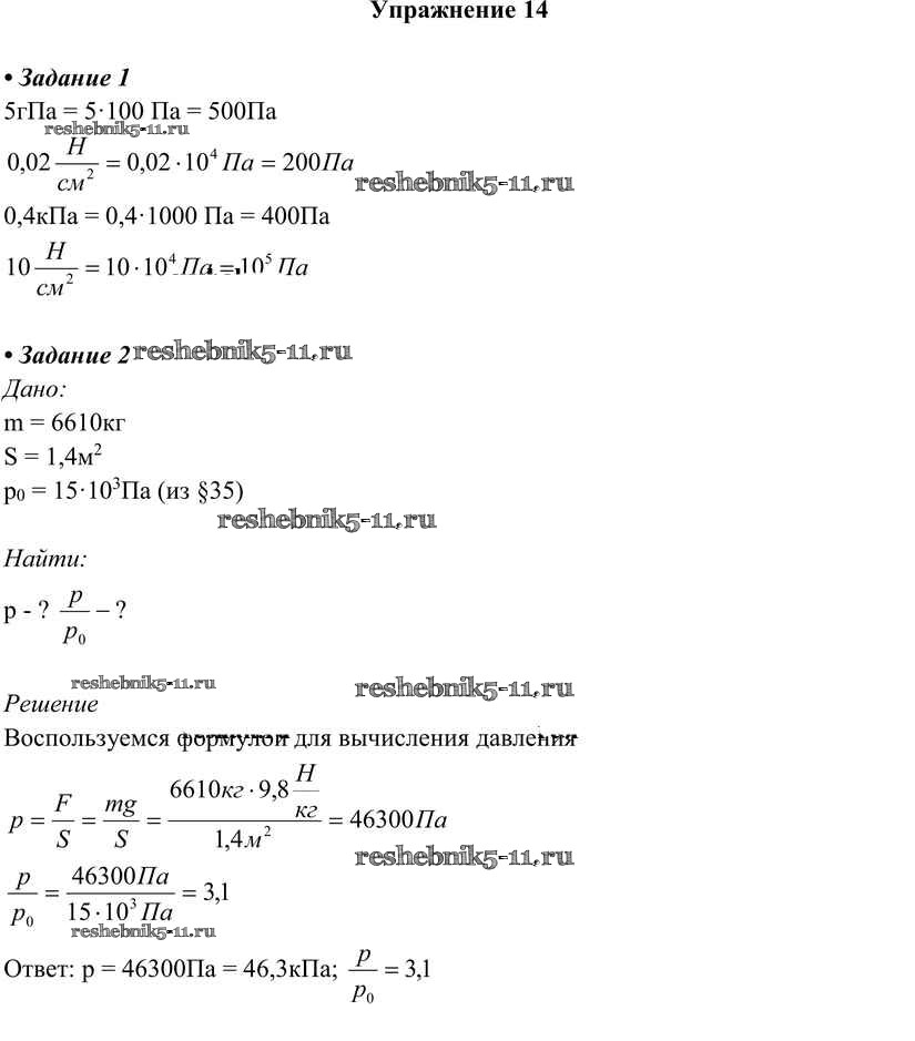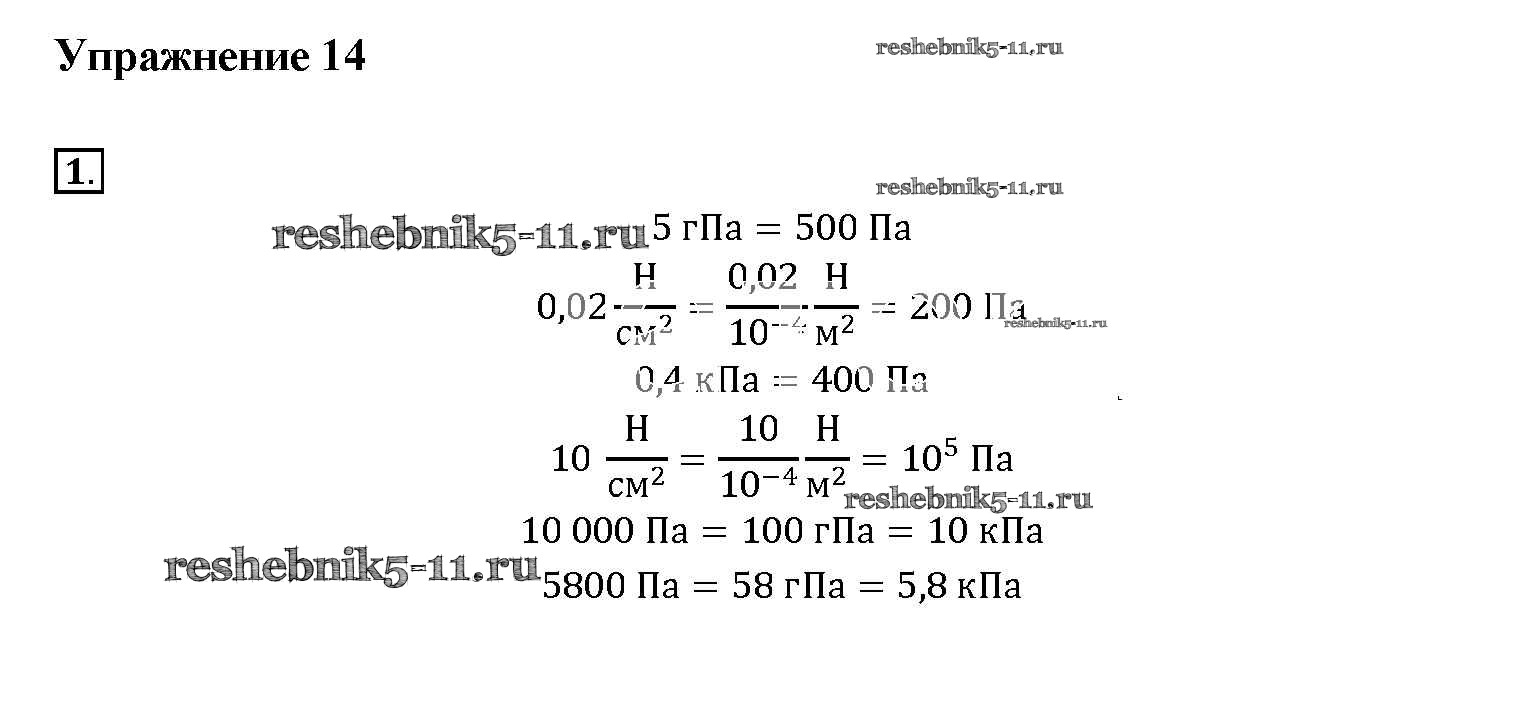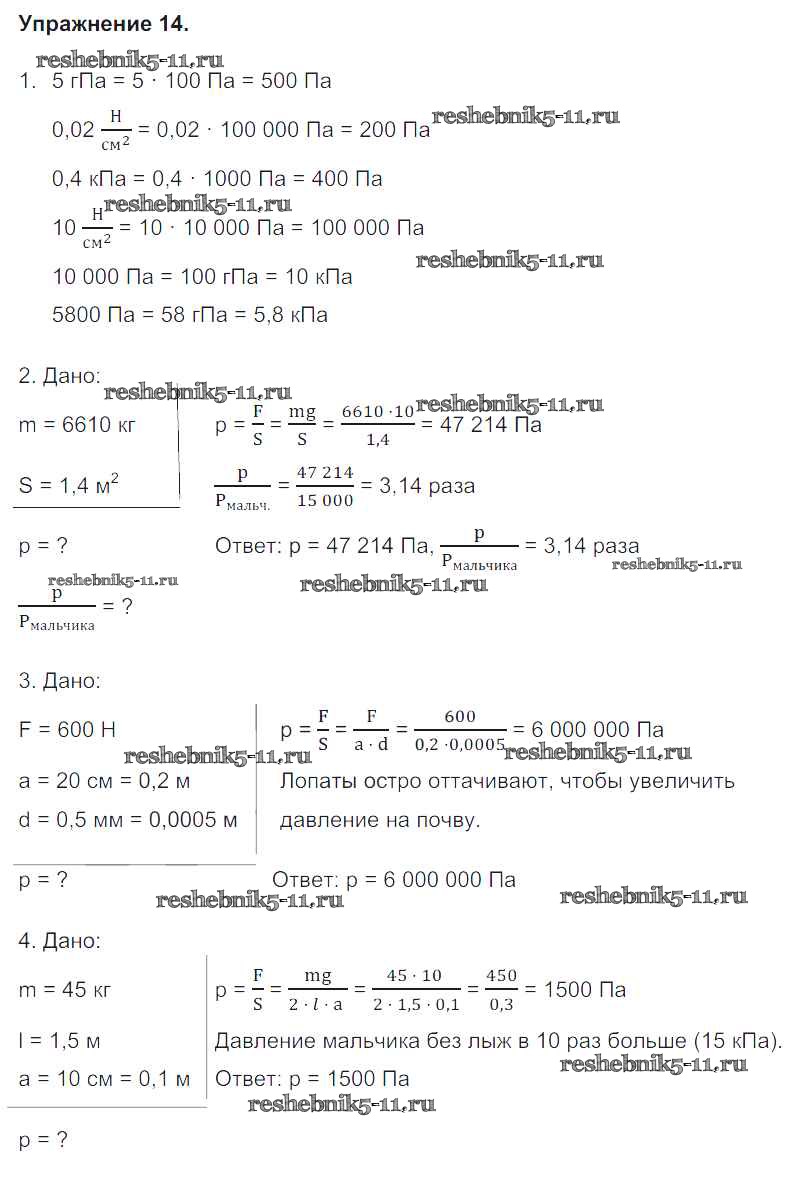Готовая домашняя работа с ответами по Физике за 7 класс Перышкин Учебник Вертикаль Дрофа 2016 ФГОС - Упражнения 14