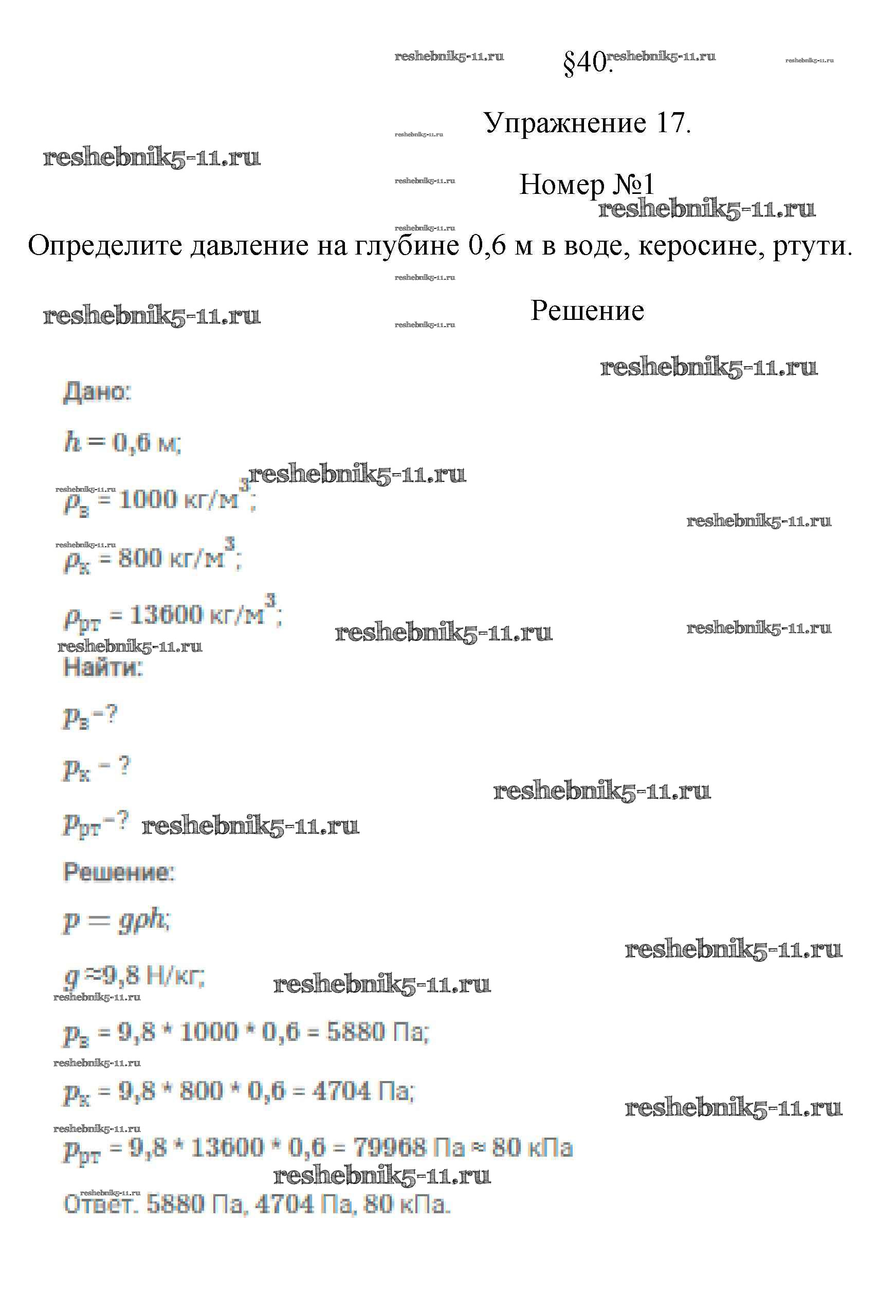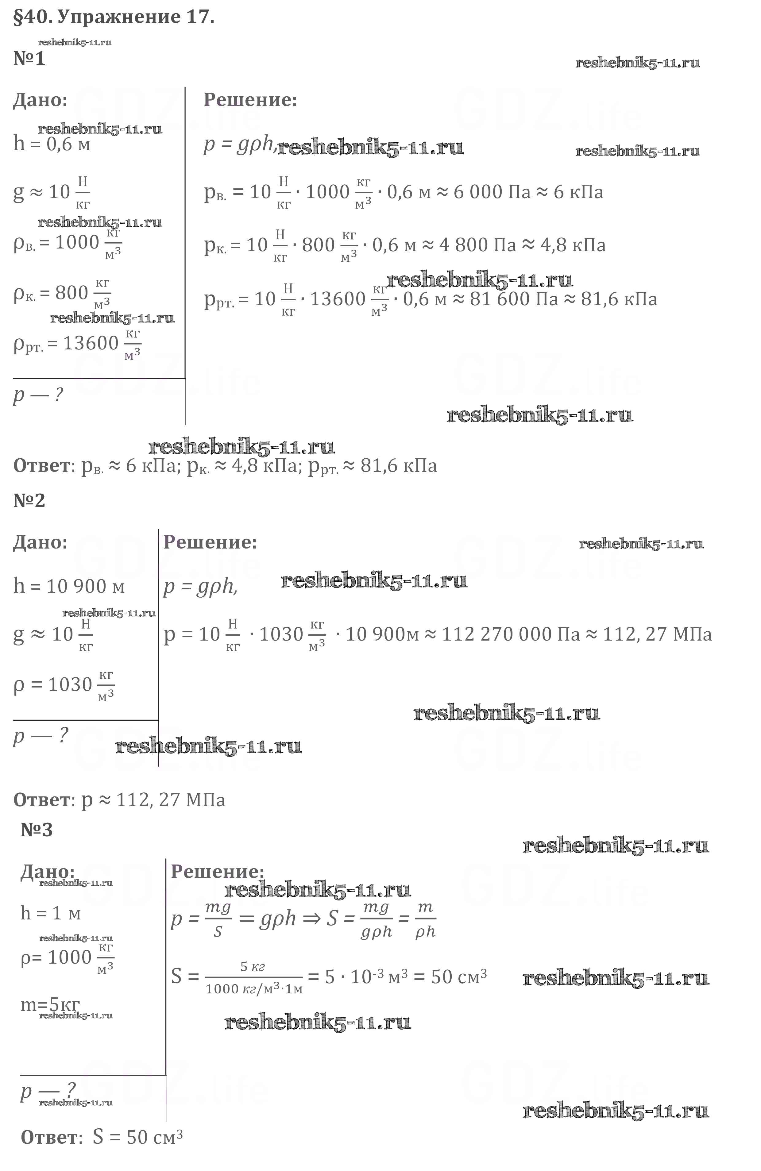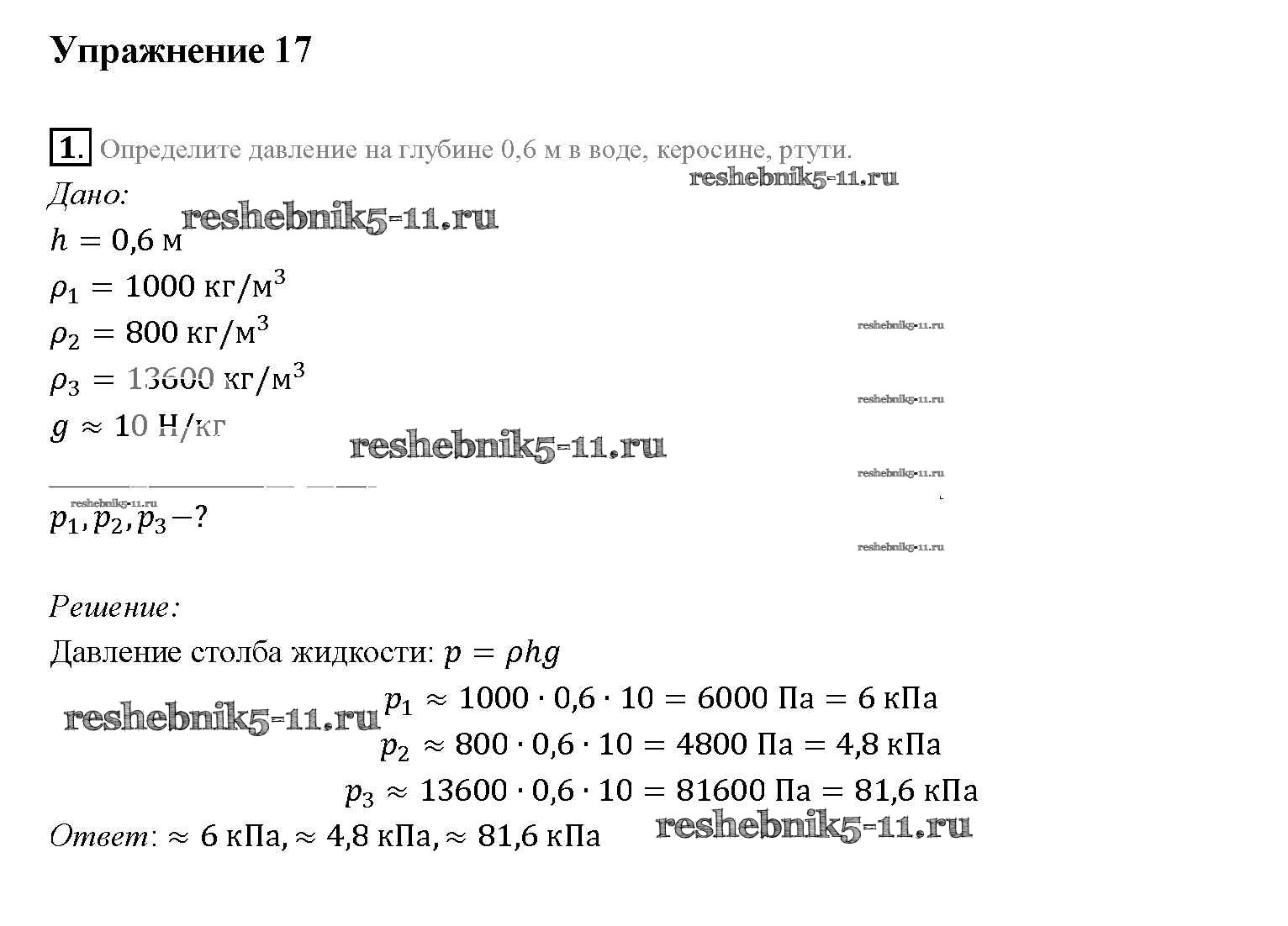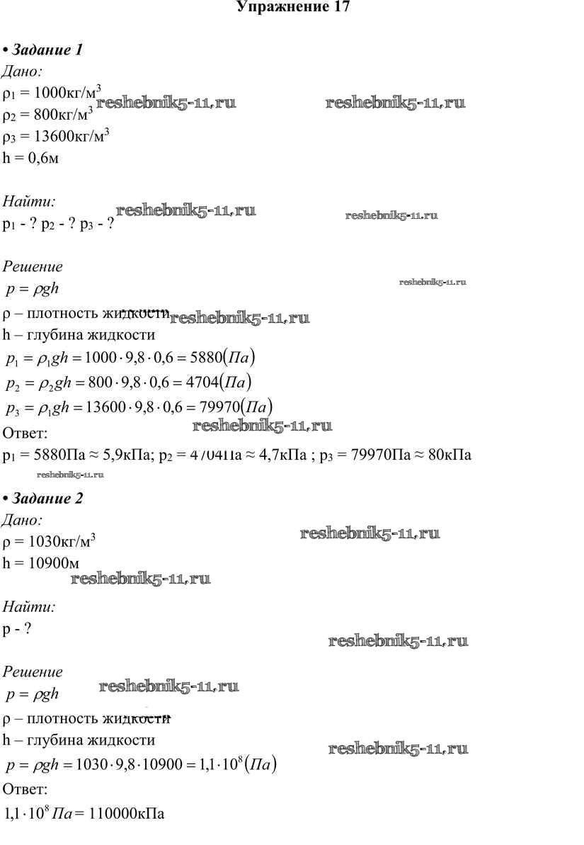 Готовая домашняя работа с ответами по Физике за 7 класс Перышкин Учебник Вертикаль Дрофа 2016 ФГОС - Упражнения 17