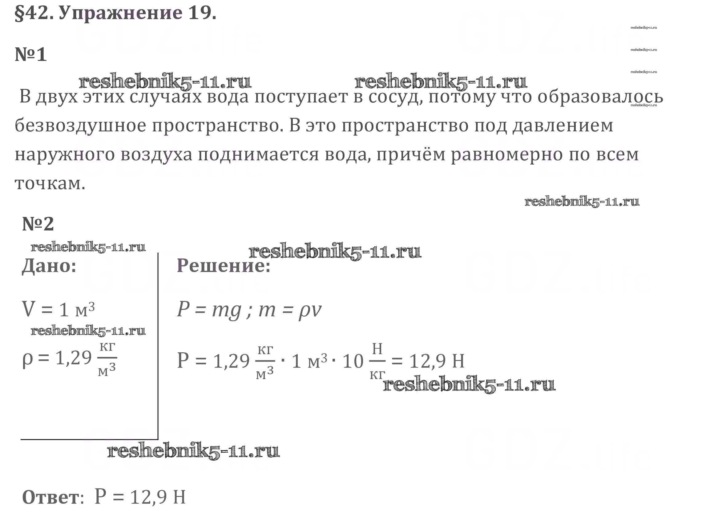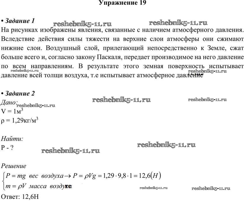 Готовая домашняя работа с ответами по Физике за 7 класс Перышкин Учебник Вертикаль Дрофа 2016 ФГОС - Упражнения 19