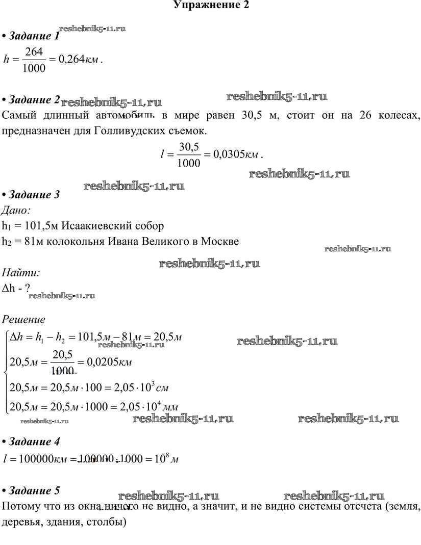Готовая домашняя работа с ответами по Физике за 7 класс Перышкин Учебник Вертикаль Дрофа 2016 ФГОС - Упражнения 2