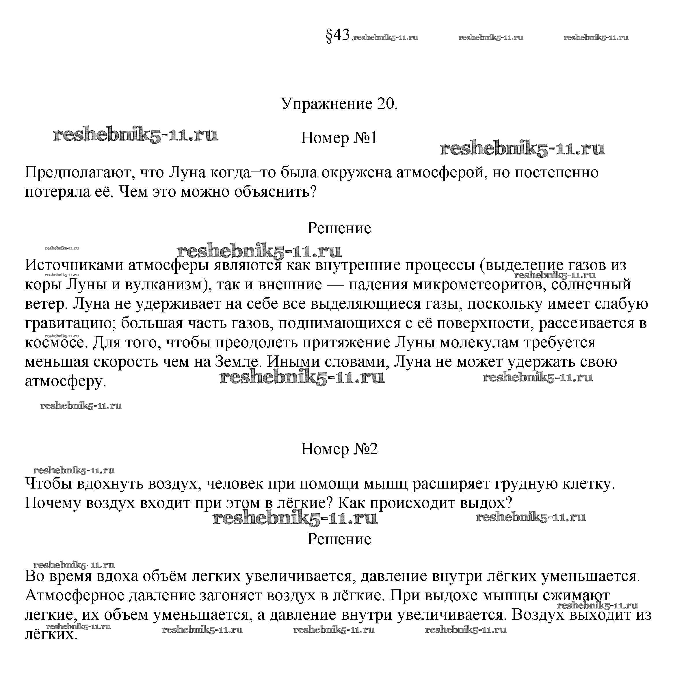 Готовая домашняя работа с ответами по Физике за 7 класс Перышкин Учебник Вертикаль Дрофа 2016 ФГОС - Упражнения 20