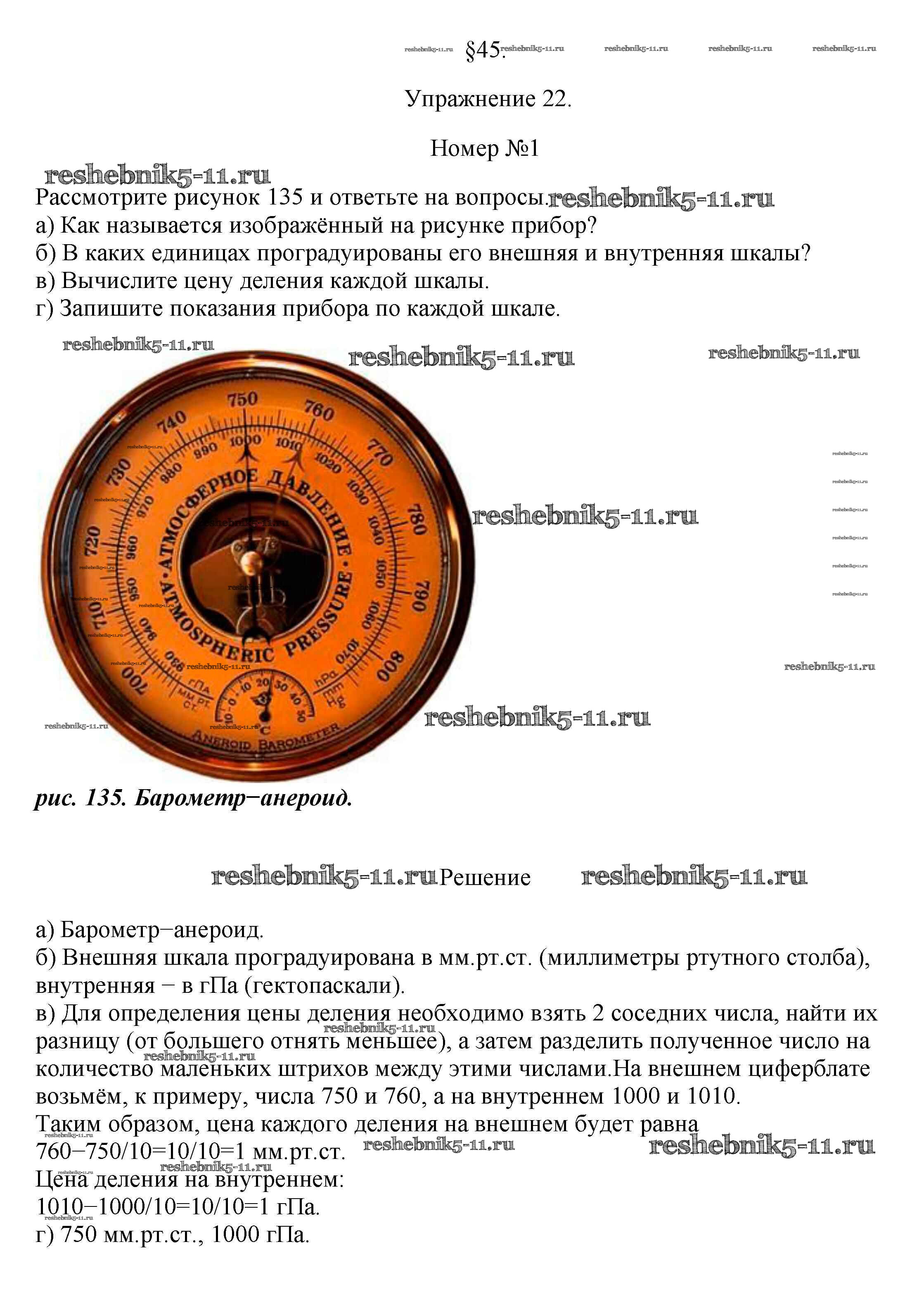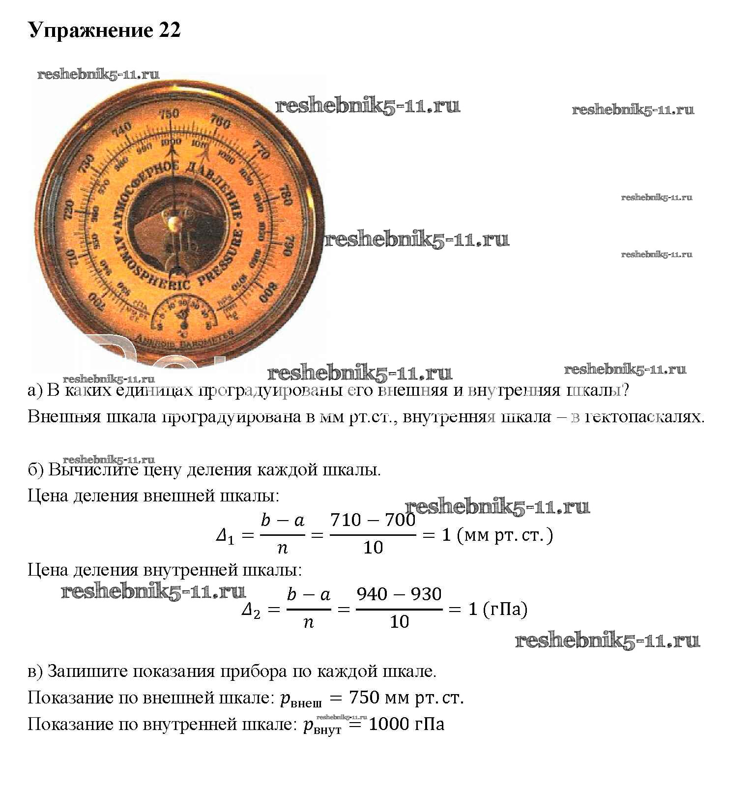 Готовая домашняя работа с ответами по Физике за 7 класс Перышкин Учебник Вертикаль Дрофа 2016 ФГОС - Упражнения 22