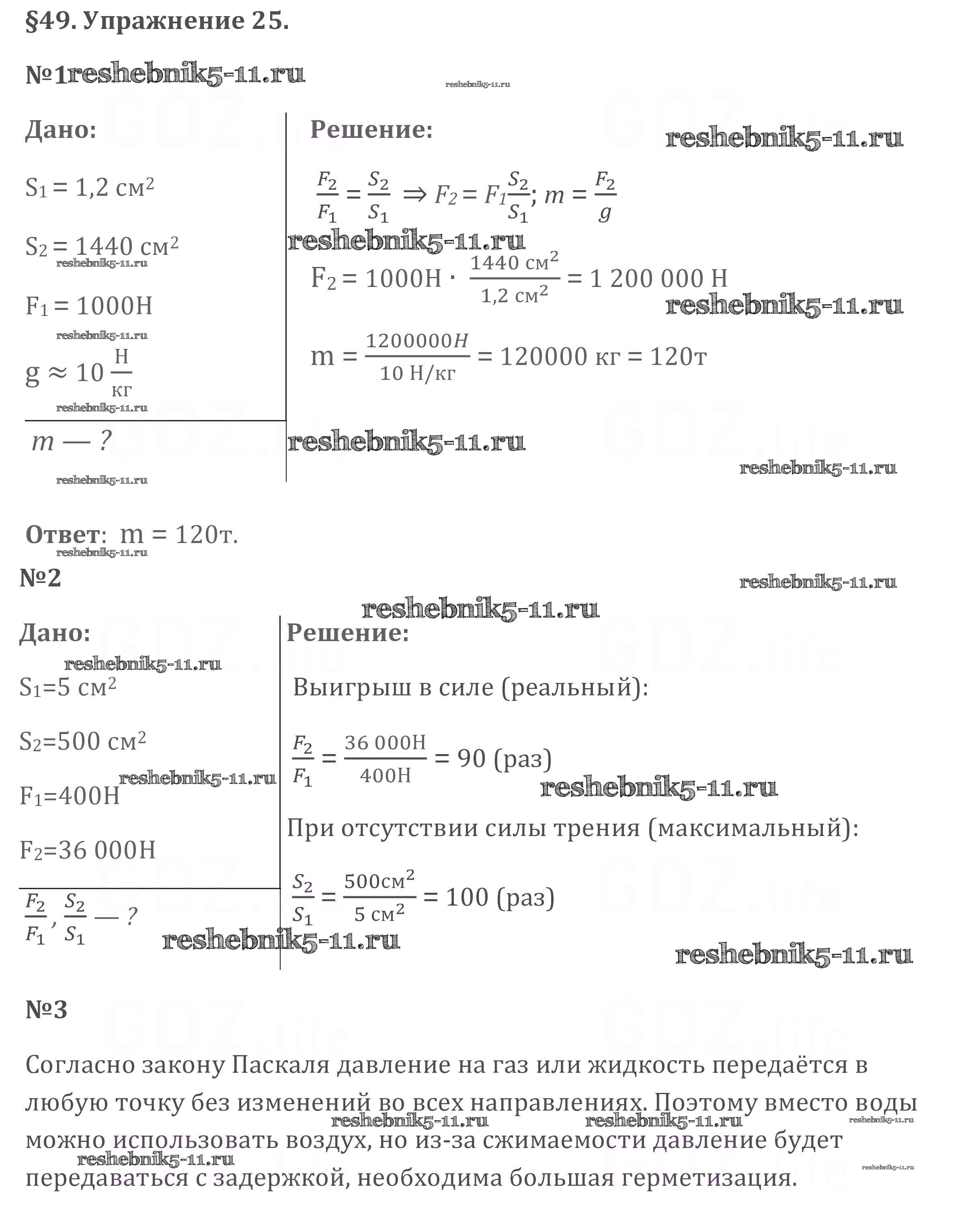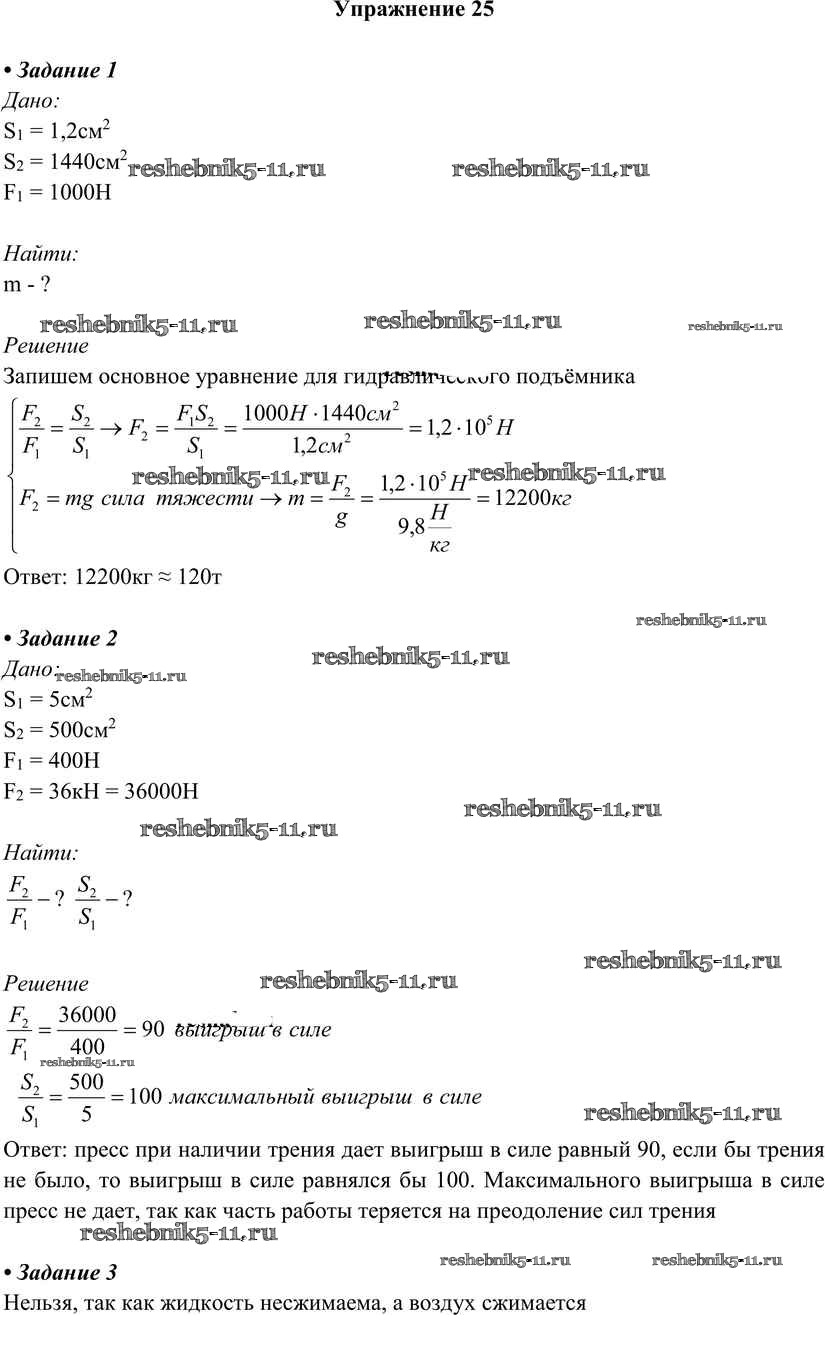 Готовая домашняя работа с ответами по Физике за 7 класс Перышкин Учебник Вертикаль Дрофа 2016 ФГОС - Упражнения 25