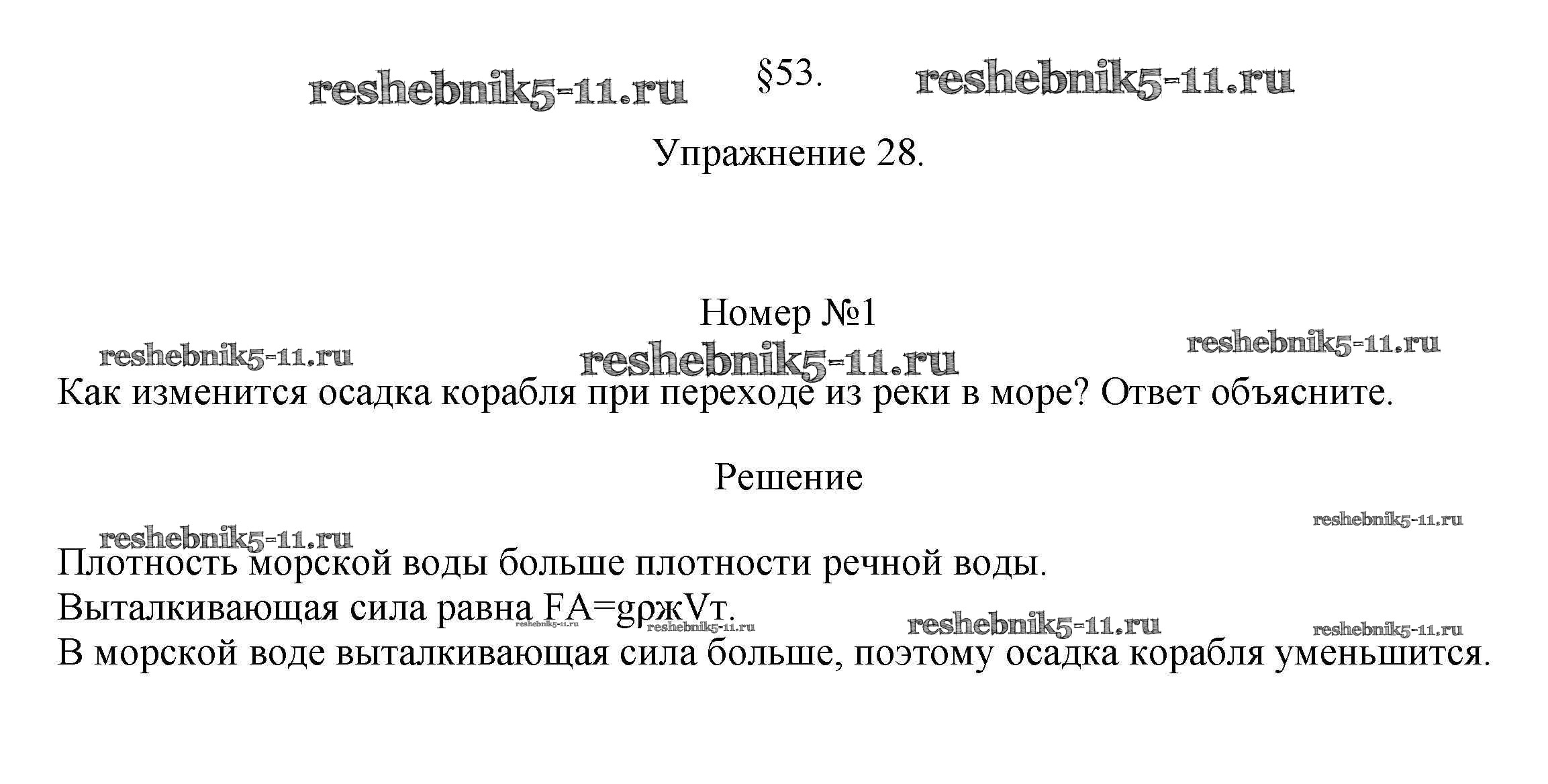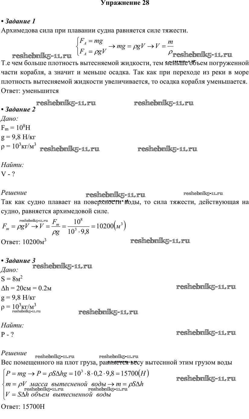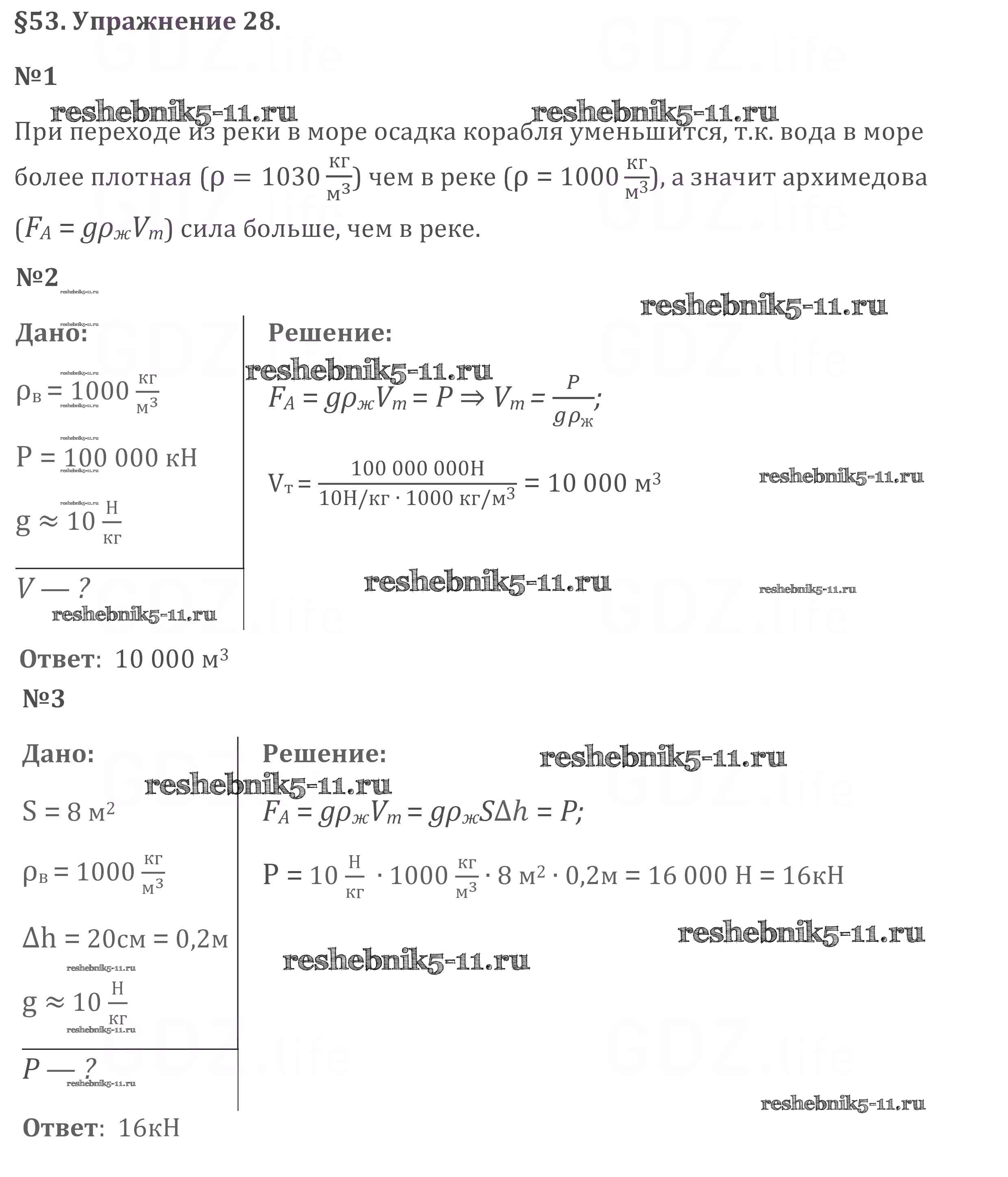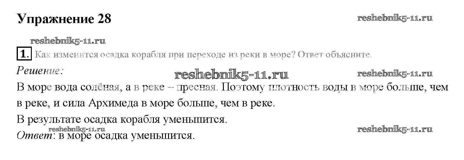 Готовая домашняя работа с ответами по Физике за 7 класс Перышкин Учебник Вертикаль Дрофа 2016 ФГОС - Упражнения 28
