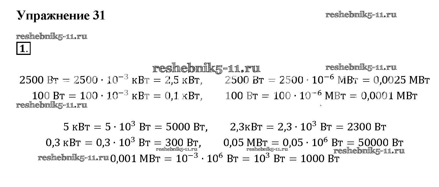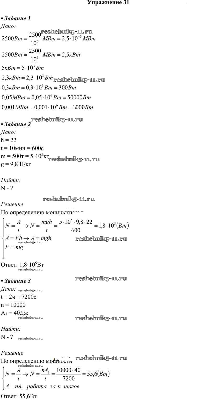 Готовая домашняя работа с ответами по Физике за 7 класс Перышкин Учебник Вертикаль Дрофа 2016 ФГОС - Упражнения 31