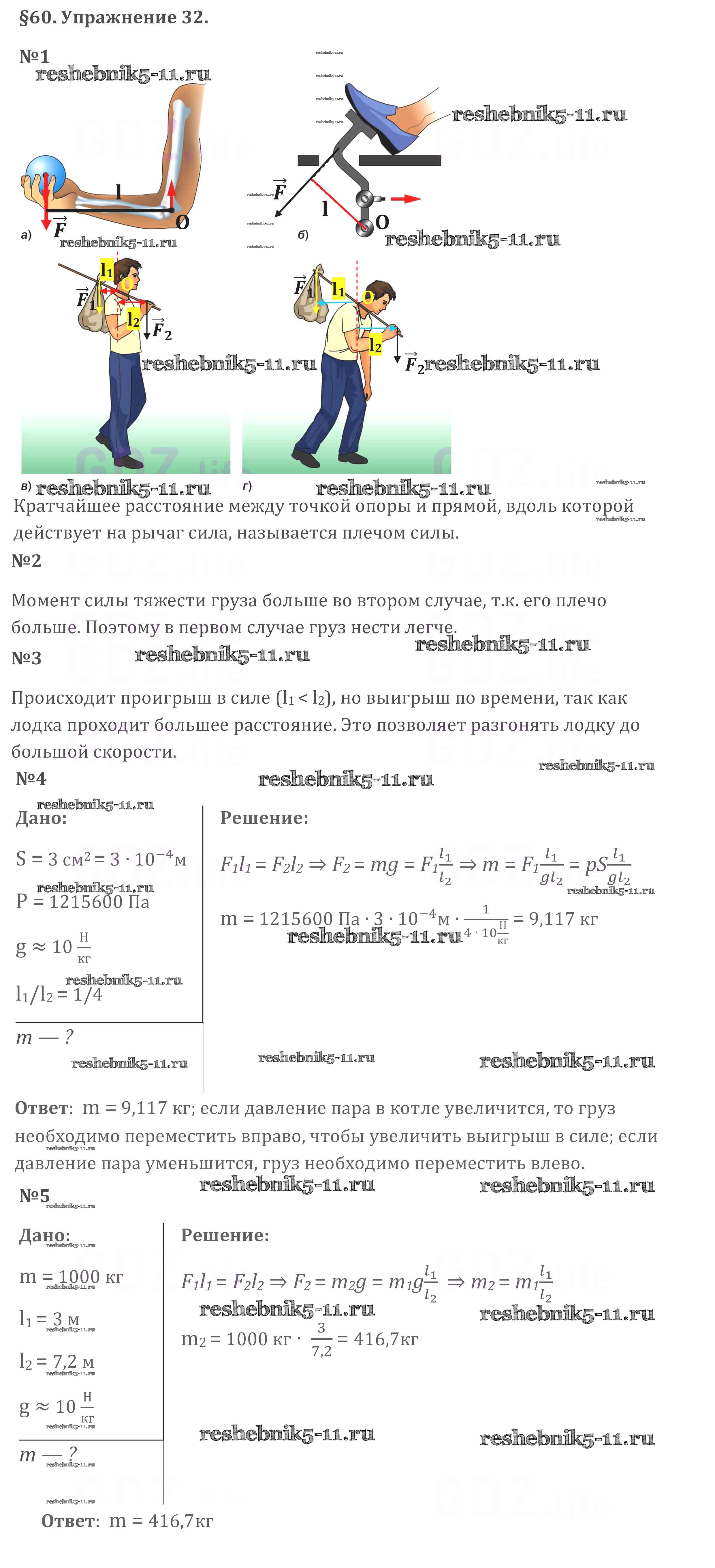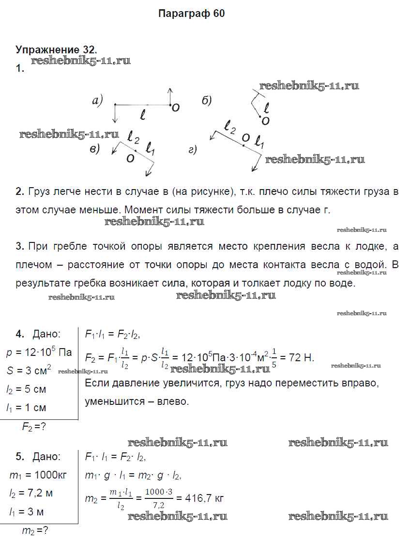 Готовая домашняя работа с ответами по Физике за 7 класс Перышкин Учебник Вертикаль Дрофа 2016 ФГОС - Упражнения 32