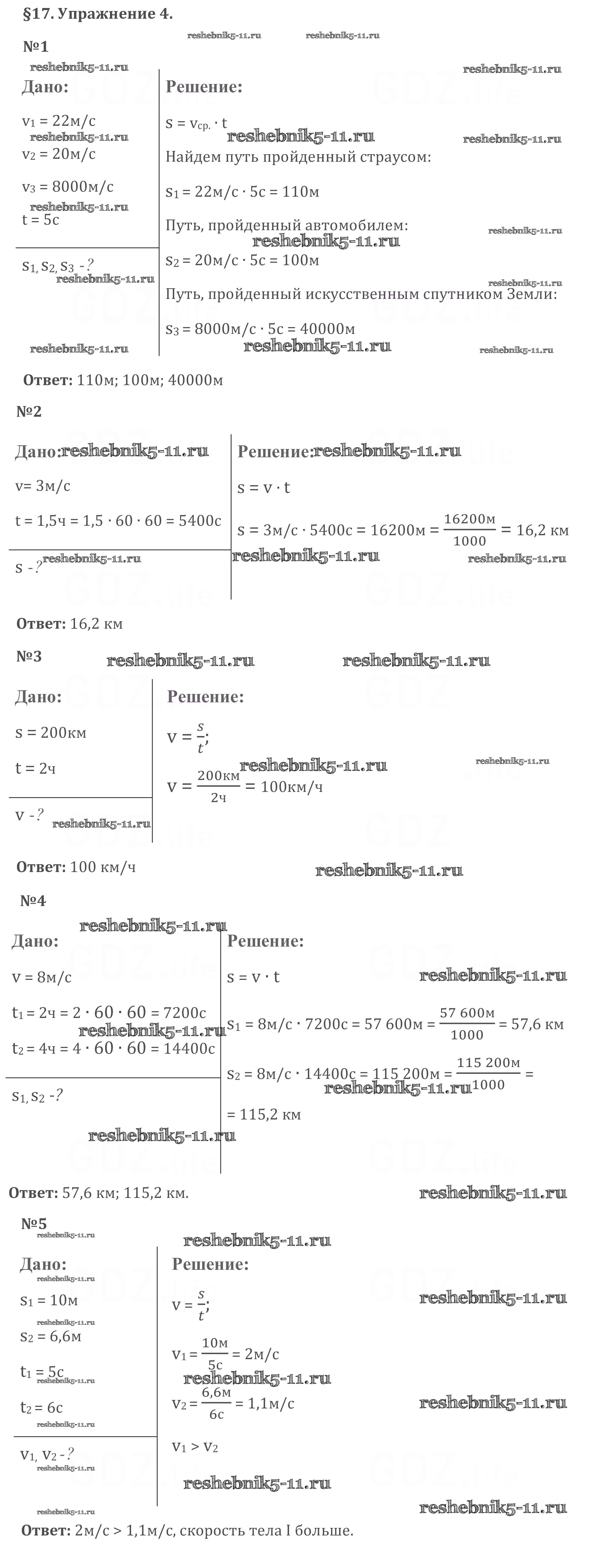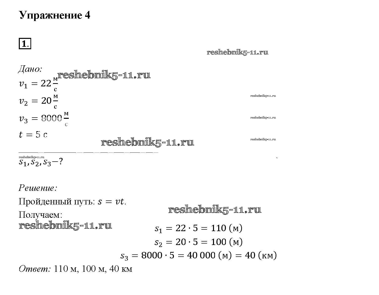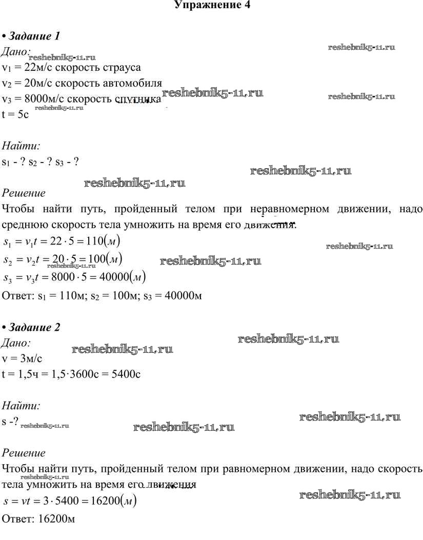 Готовая домашняя работа с ответами по Физике за 7 класс Перышкин Учебник Вертикаль Дрофа 2016 ФГОС - Упражнения 4