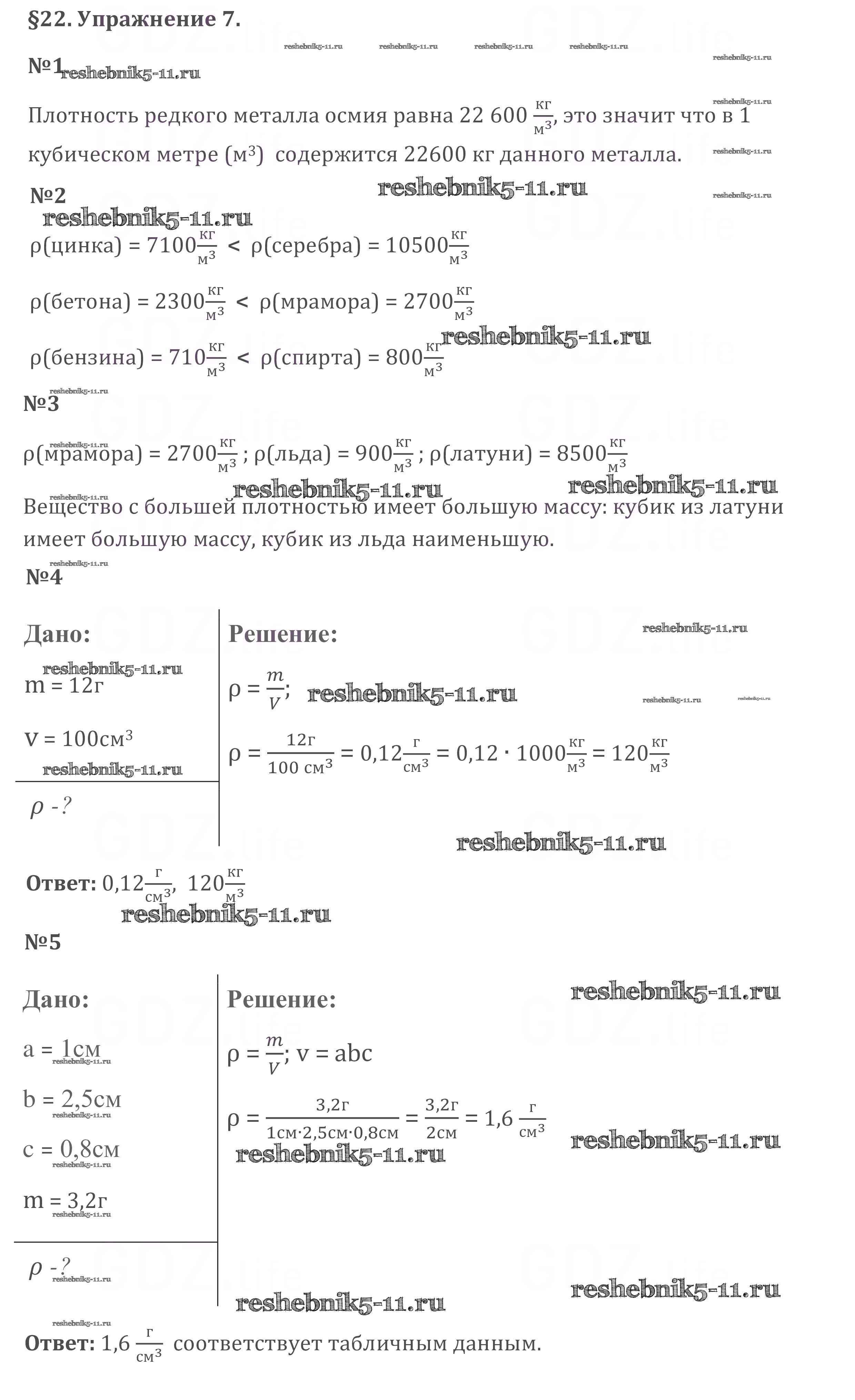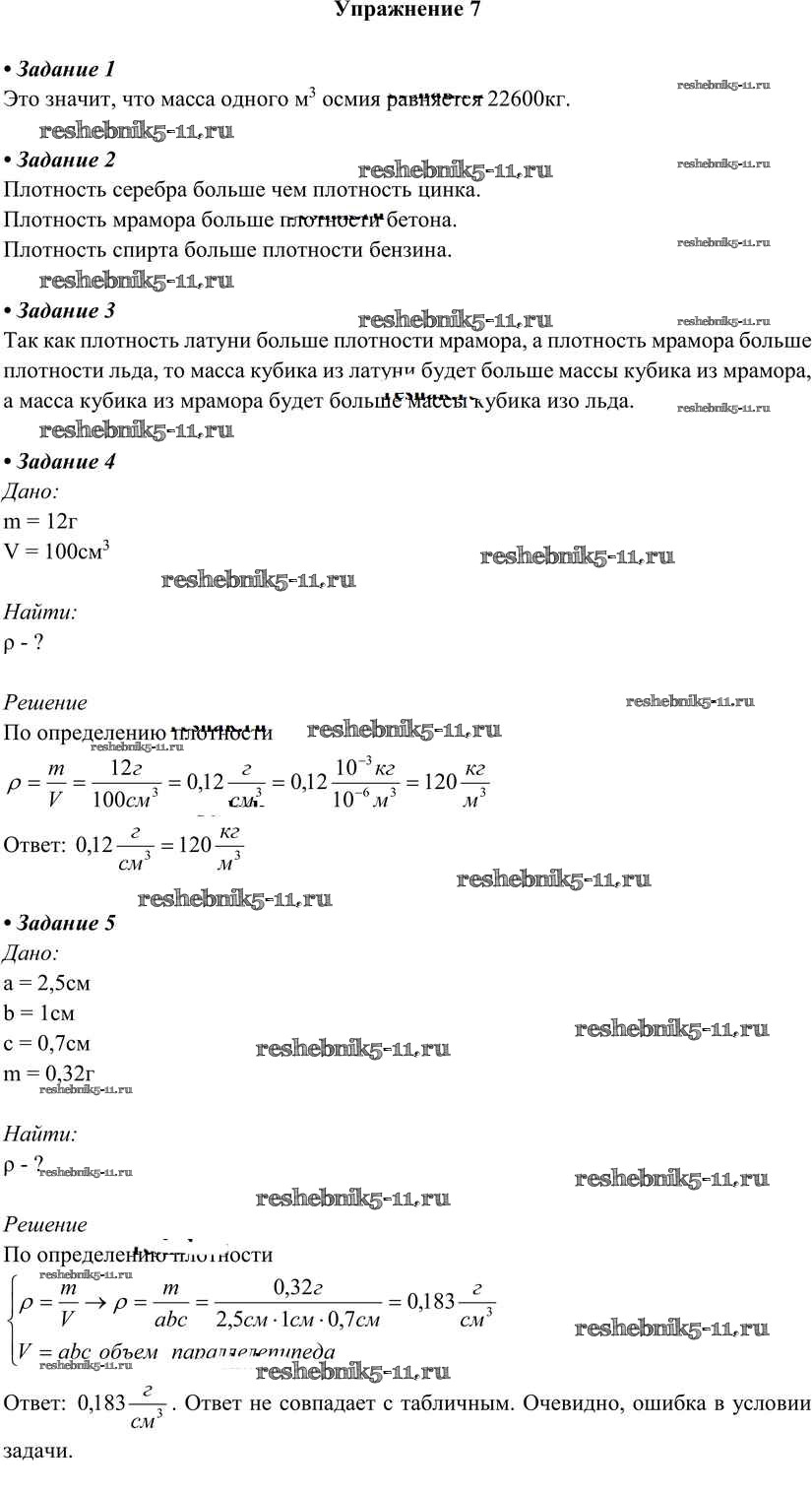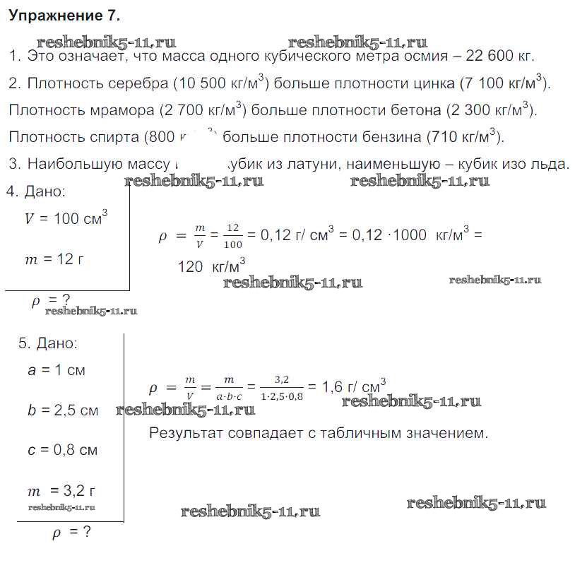 Готовая домашняя работа с ответами по Физике за 7 класс Перышкин Учебник Вертикаль Дрофа 2016 ФГОС - Упражнения 7