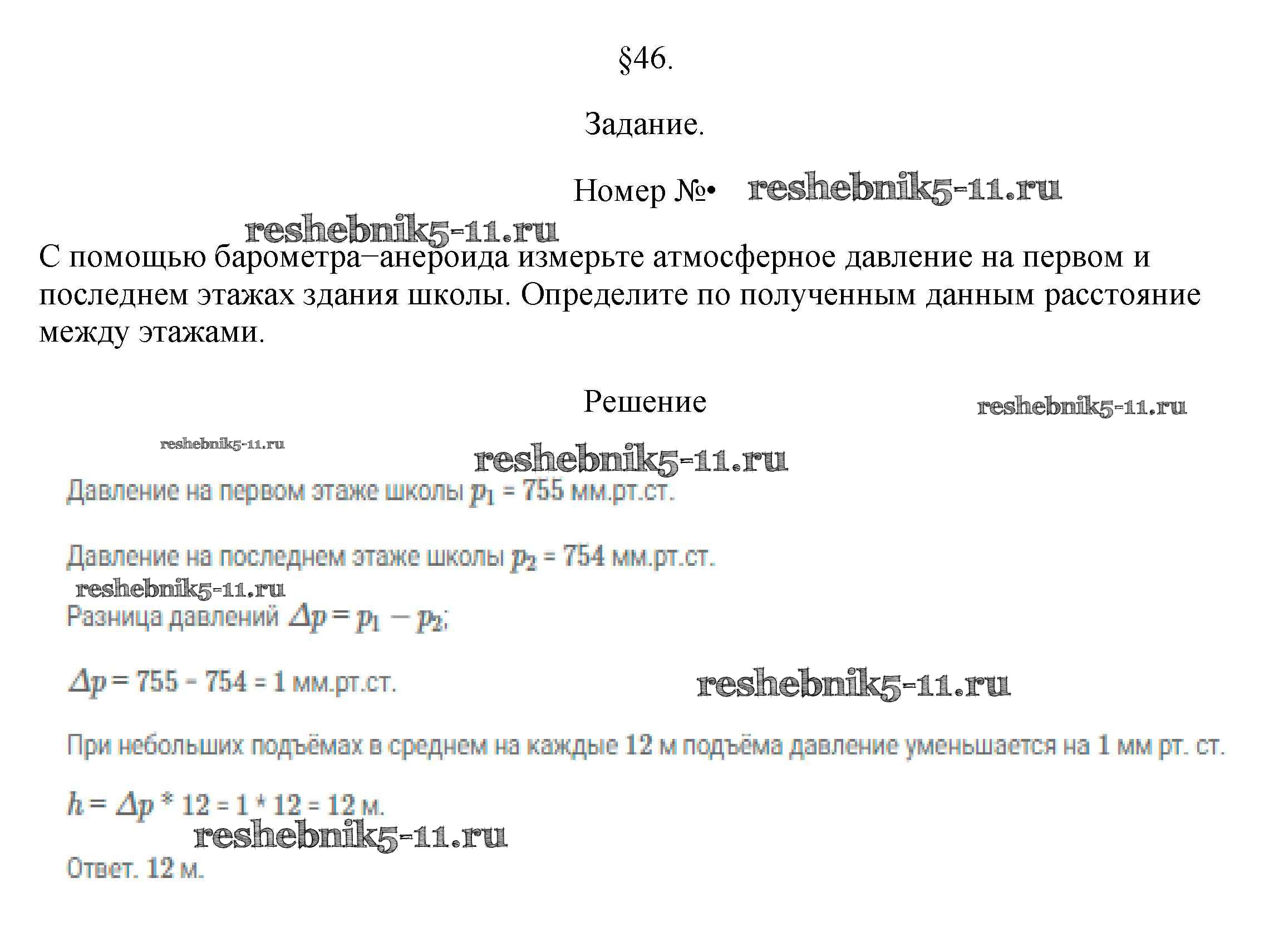 Готовая домашняя работа с ответами по Физике за 7 класс Перышкин Учебник Вертикаль Дрофа 2016 ФГОС - Задания. Параграфы §46