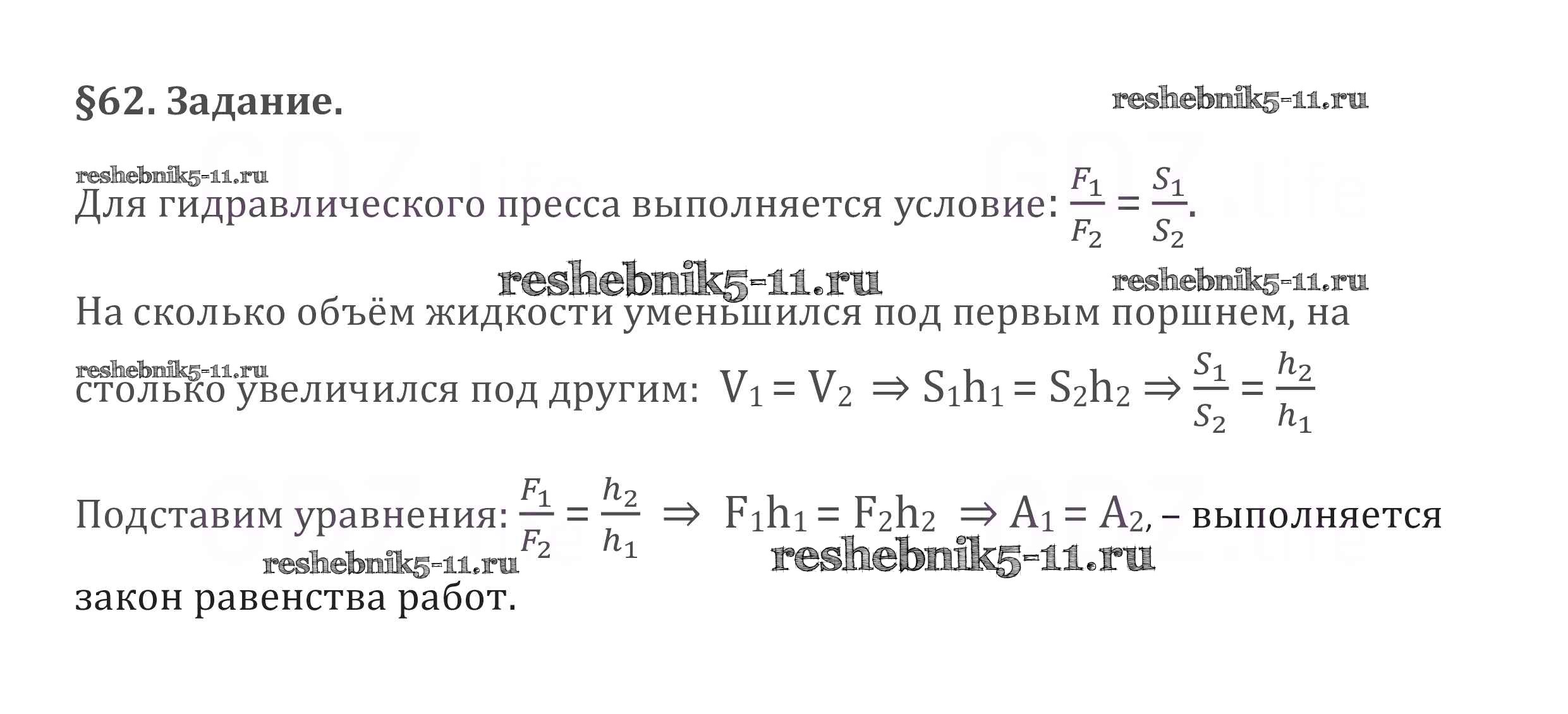 Физика за 7 класс Перышкин Учебник Вертикаль Дрофа задание. параграф §62