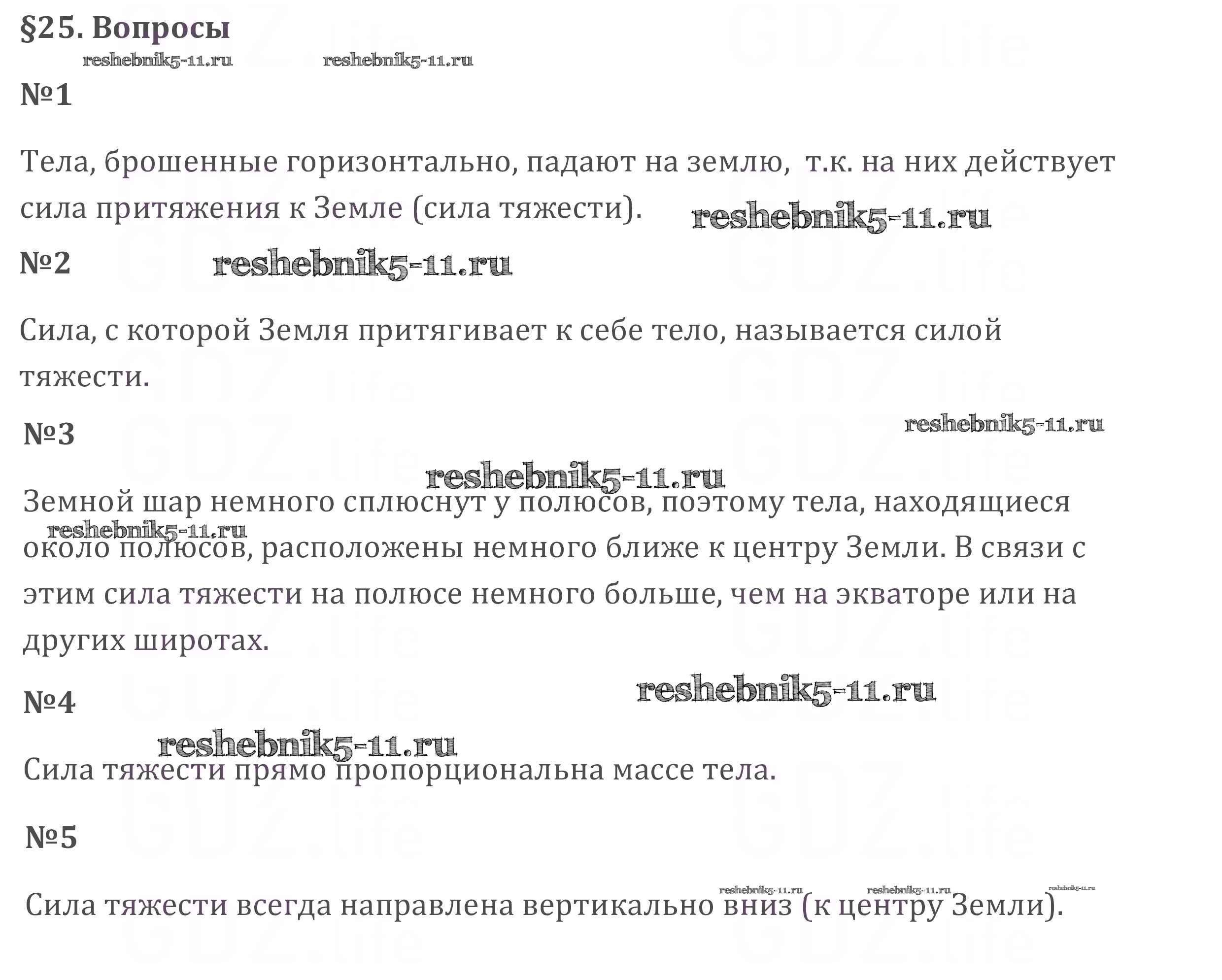 Готовая домашняя работа с ответами по Физике за 7 класс Перышкин Учебник Вертикаль Дрофа 2016 ФГОС - Вопросы. Параграфы §25