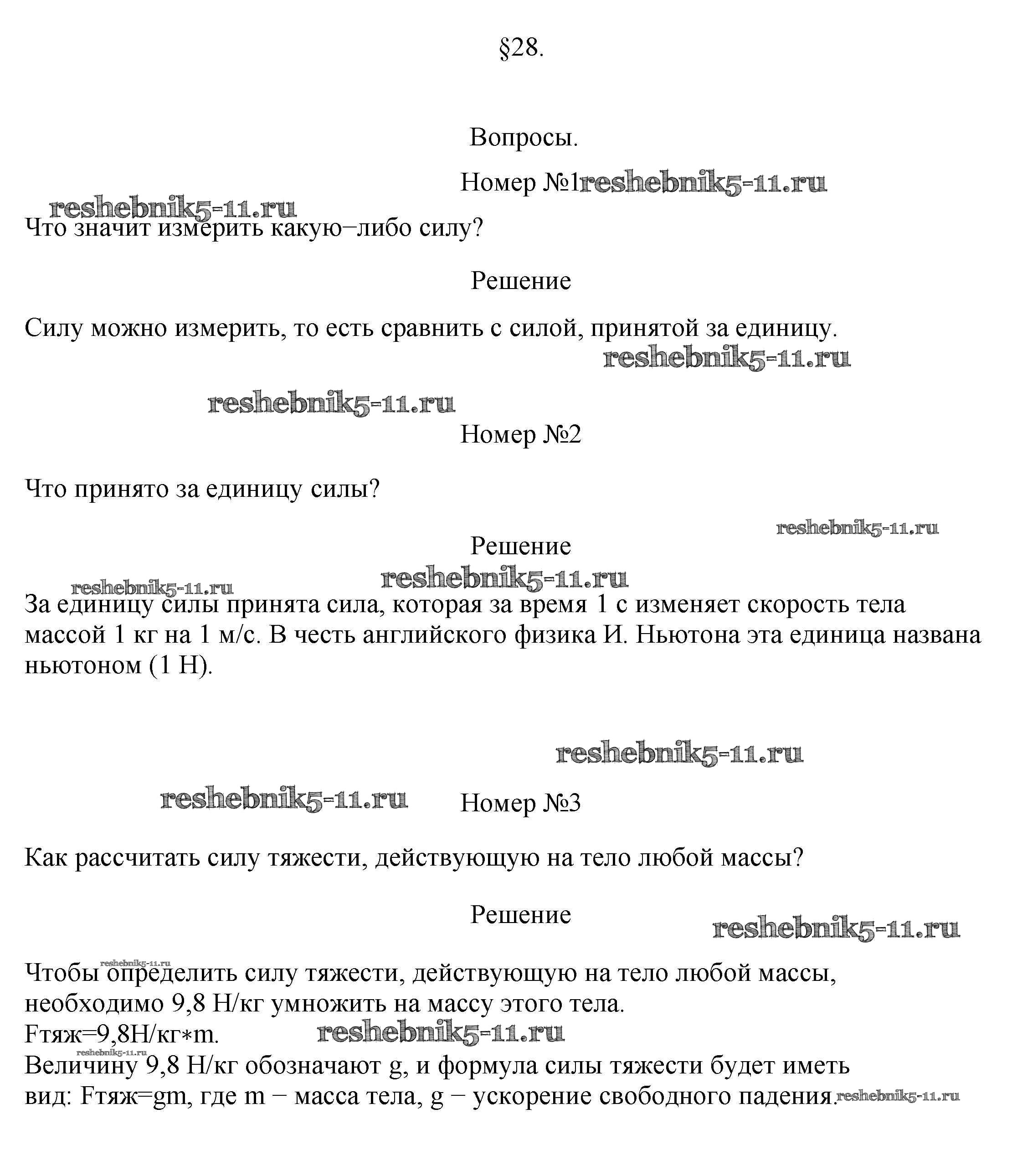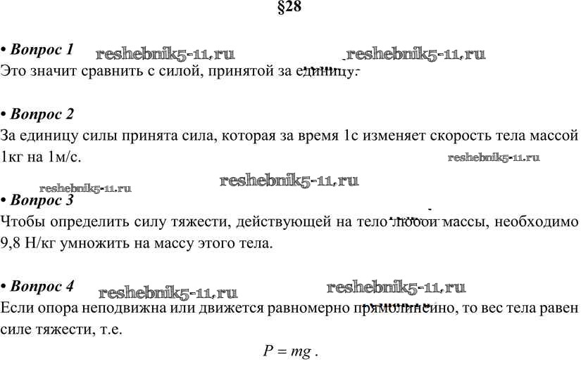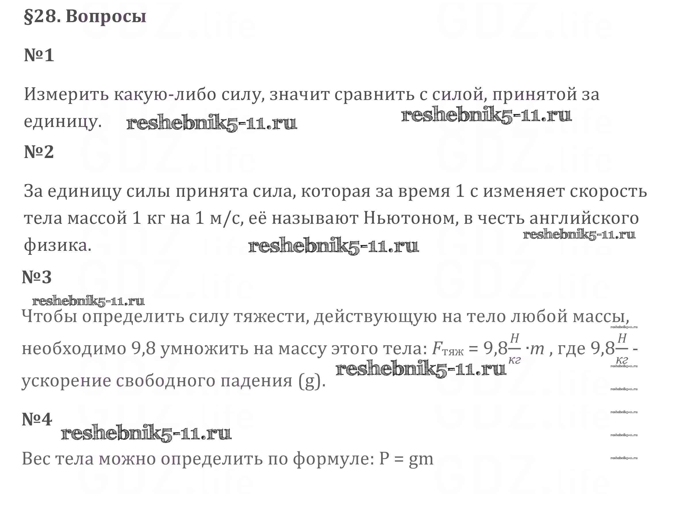 Готовая домашняя работа с ответами по Физике за 7 класс Перышкин Учебник Вертикаль Дрофа 2016 ФГОС - Вопросы. Параграфы §28